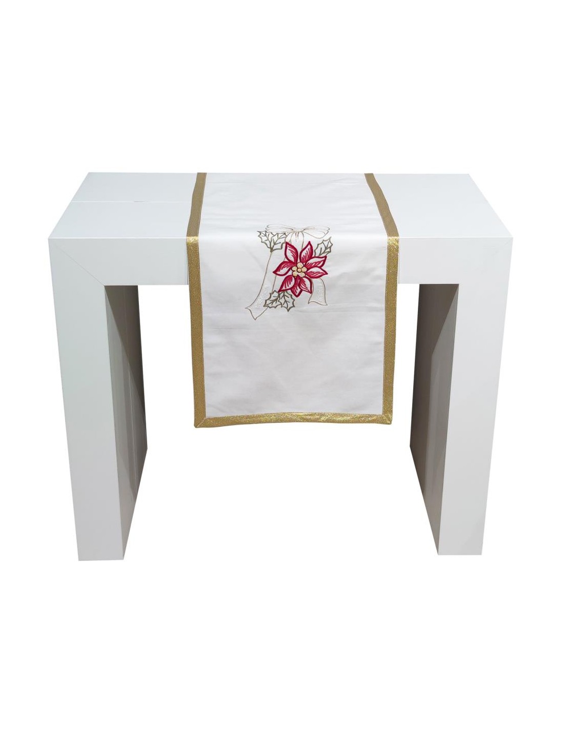 Runner Alessandro Baroncelli in Panama di puro Cotone con ricamo natalizio e bordo applicato in filo lurex.