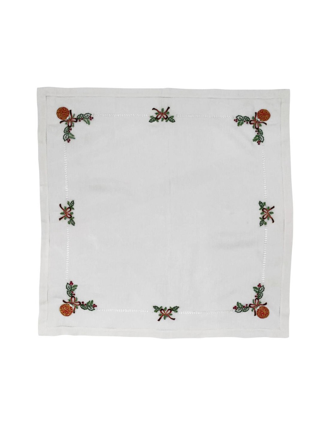 COPRITAVOLO NATALIZIO IN LINO RICAMATO 85 X 85 CM