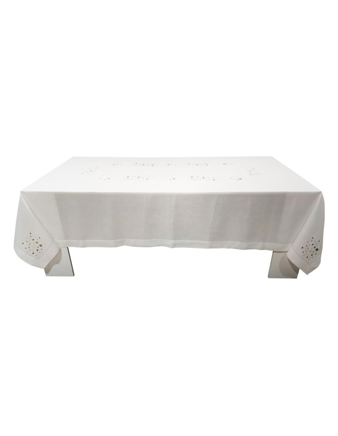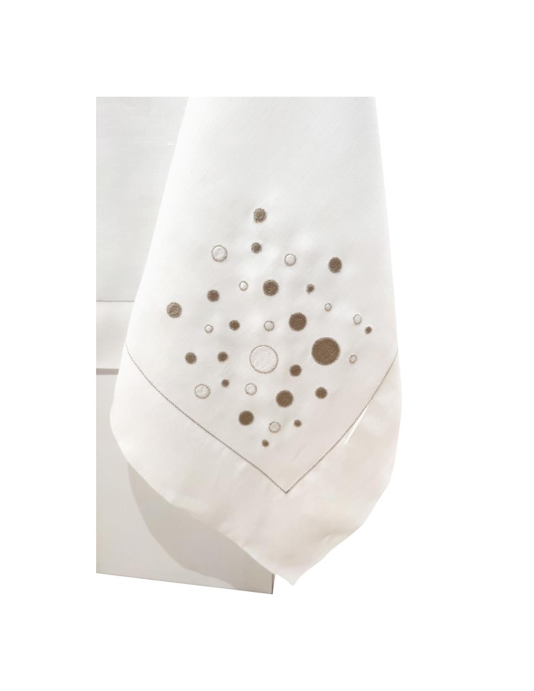 Tovaglia Dea da 12 posti puro Lino rifinita con ricami piazzati color