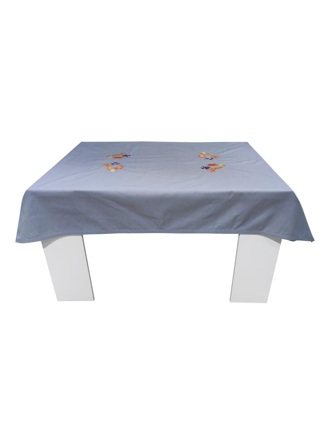 Tovaglia rettangolare da 6 posti Dreams serie con applicazioni a tema marino ricamate e 6 tovaglioli