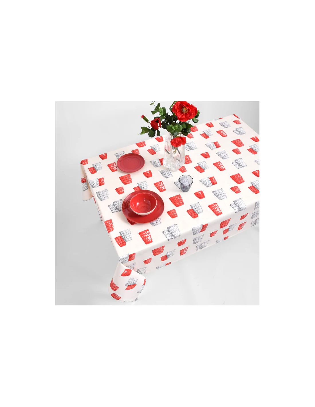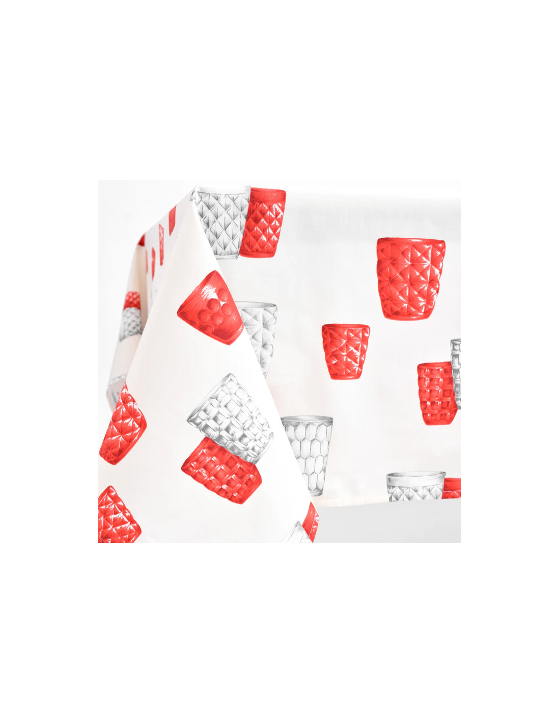 La tovaglia rettangolare, in cotone 100% in preziosa stampa digitale fantasia Bicchieri All-Over rifinita con bordo rivoltato all'interno di 1 cm.