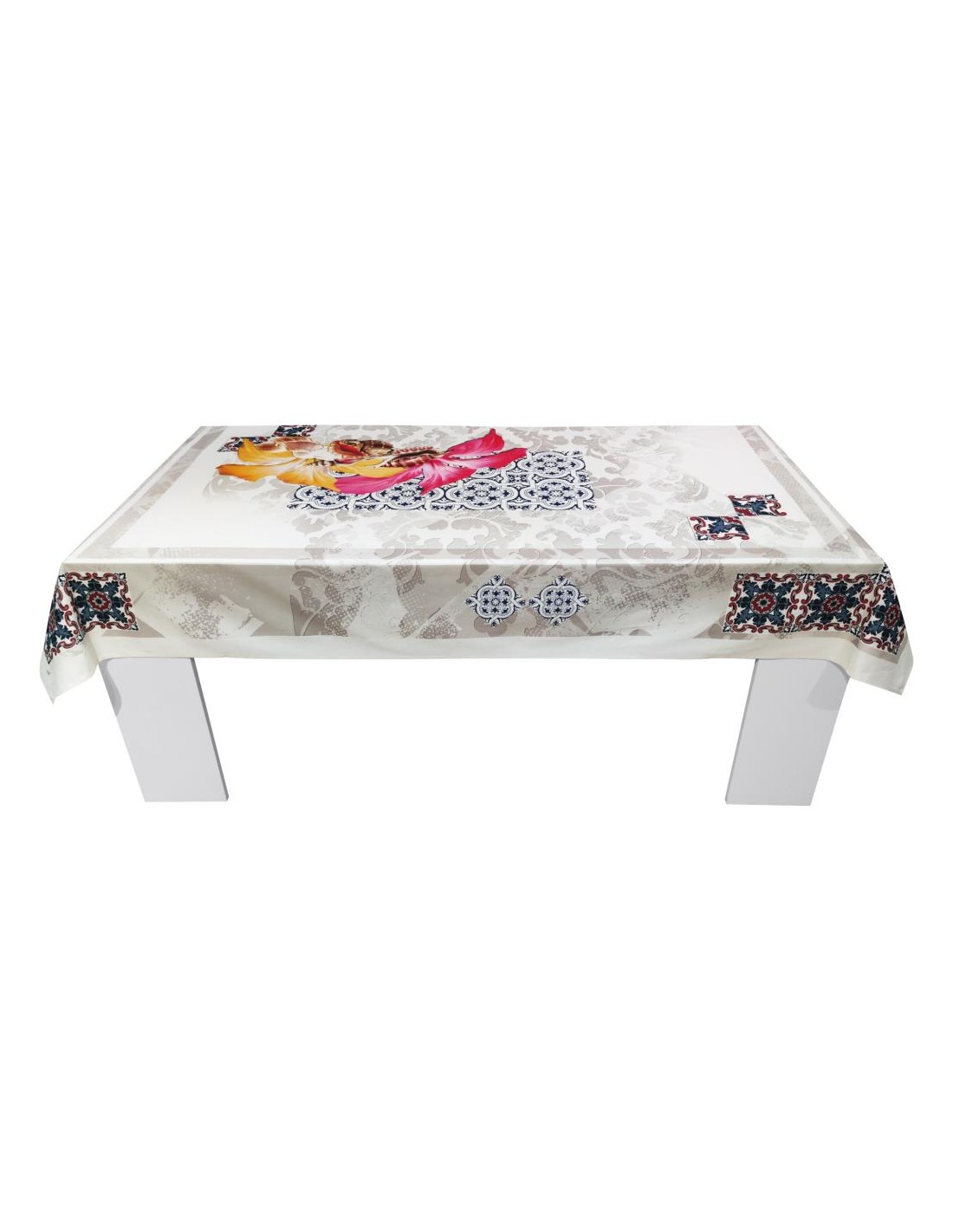Tovaglia rettangolare da 12 posti Emily in puro cotone in stampa floreale digitale piazzata.