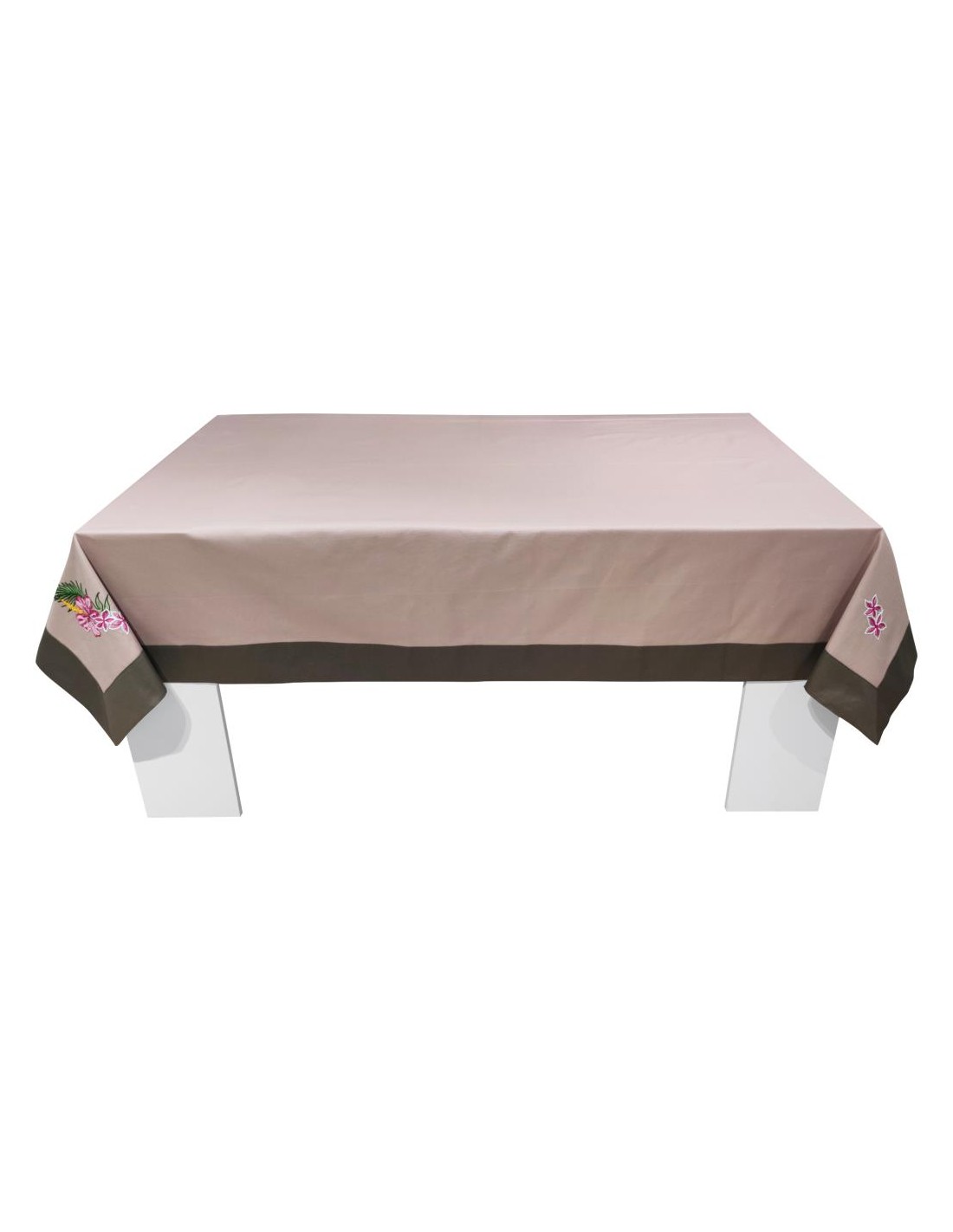 Tovaglia rettangolare in panama di puro cotone rifinita con ricami