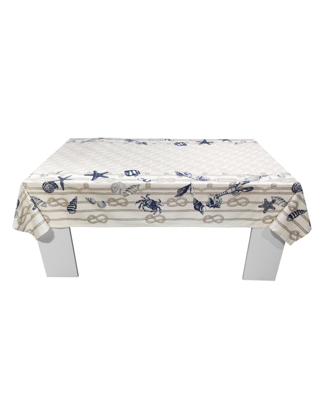 Tovaglia rettangolare da 8 posti in puro cotone stampato fantasia marina.