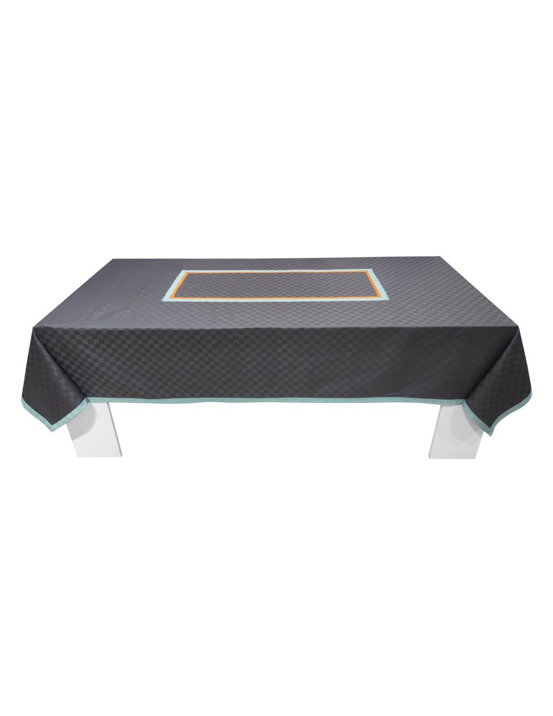 Tovaglia rettangolare da 12 posti in dama di puro cotone con tovaglioli,