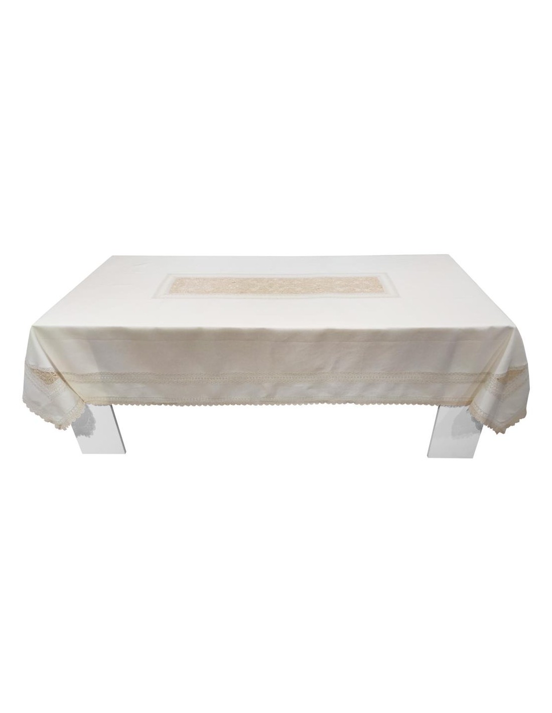 pizzo di cotone, inserti sul piano e ai quattro angoli con pizzo