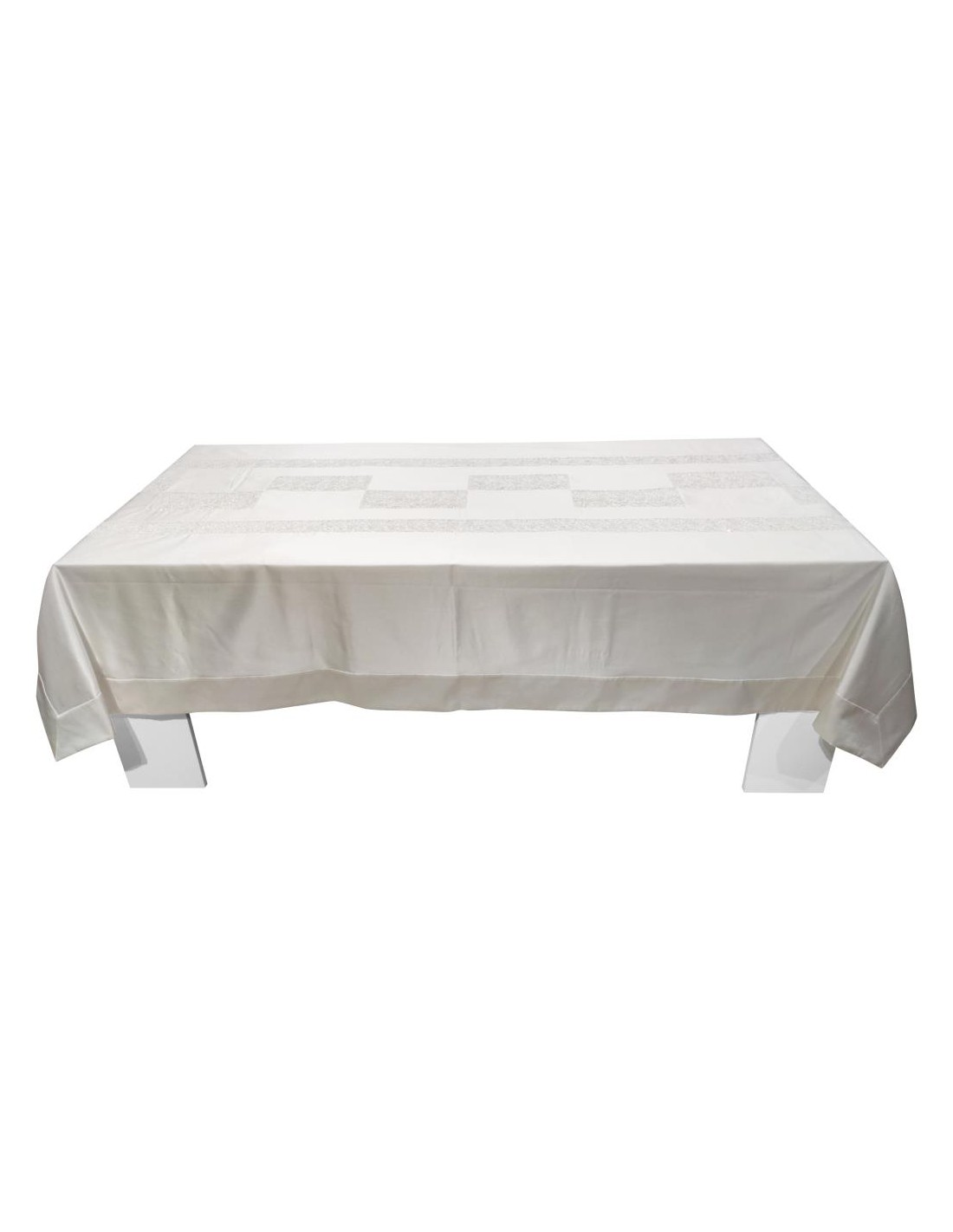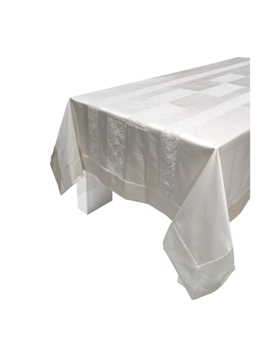 Tovaglia rettangolare da 12 posti con tovaglioli, rifinita con inserti in