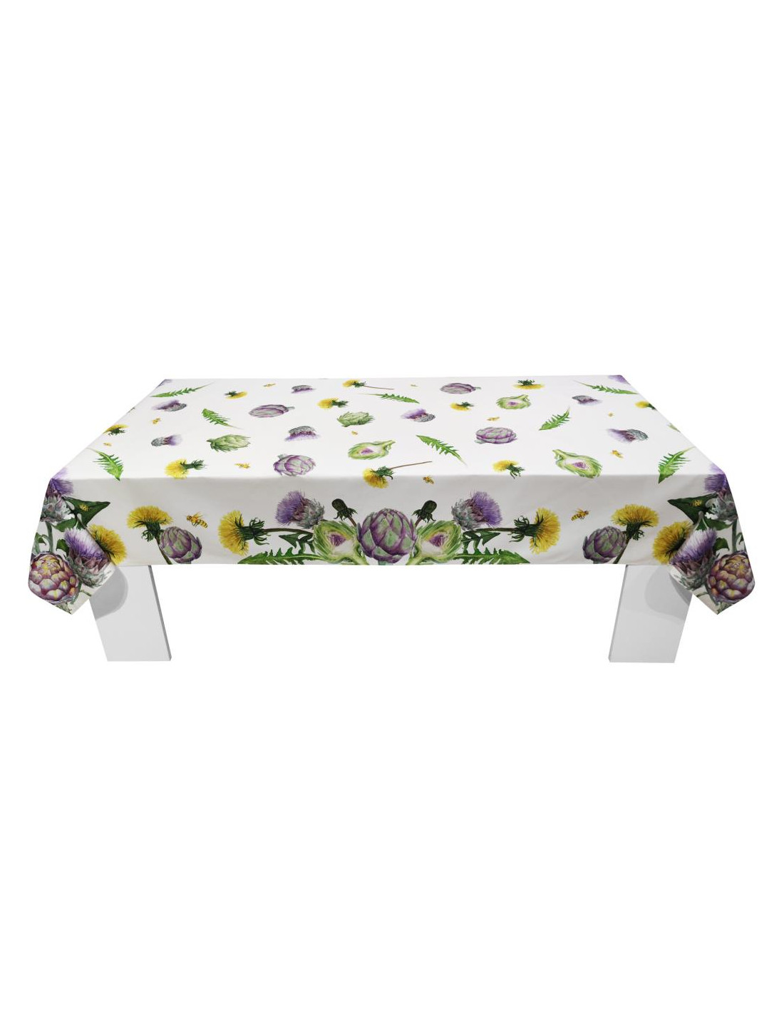 La tovaglia rettangolare da 12 posti, in cotone 100% in preziosa stampa digitale piazzata fantasia Carciofi.