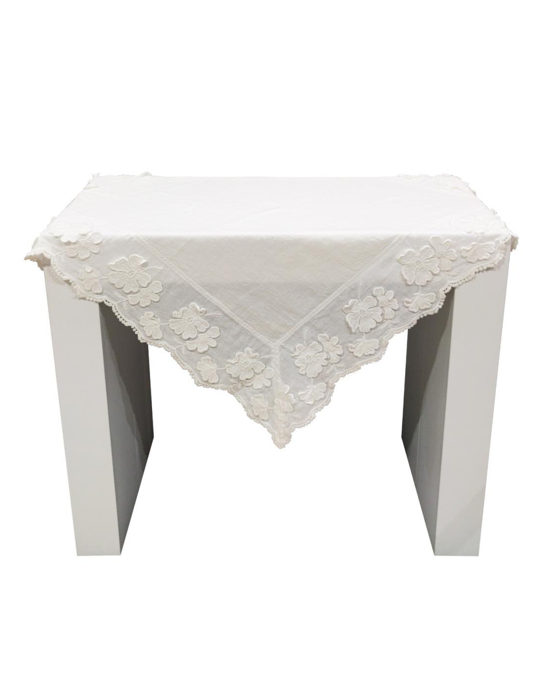 Tovaglietta in puro lino rifinita con pizzo e ricamo