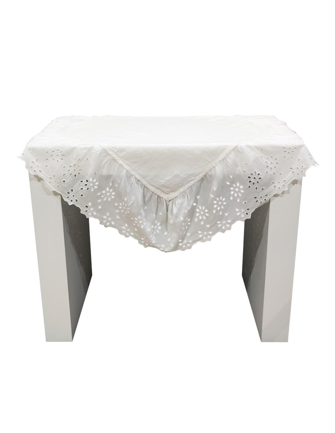 Tovaglietta in puro Lino rifinita con balza in Cotone e pizzo Sangallo .