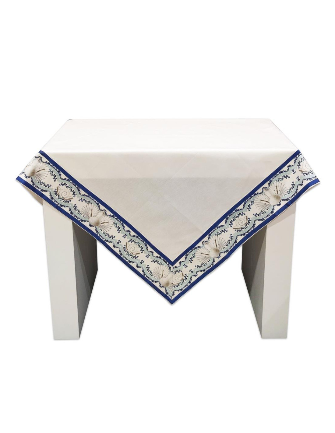 Tovaglietta in Panama di puro Cotone rifinita con bordo stampato fantasia Conchiglie.