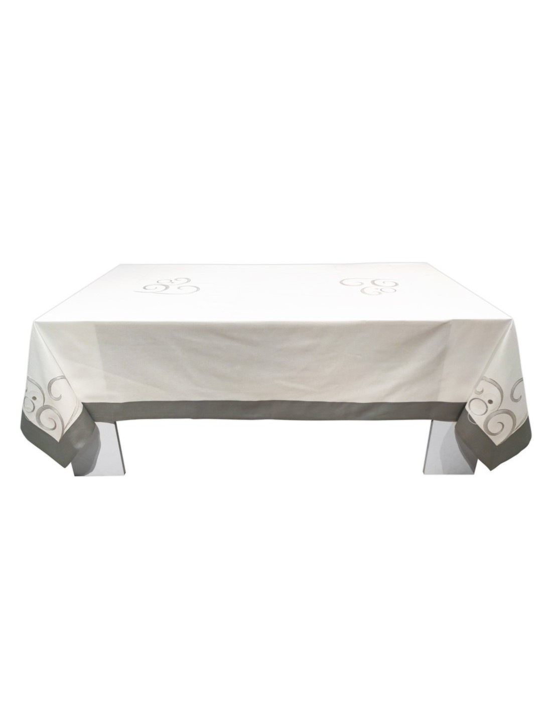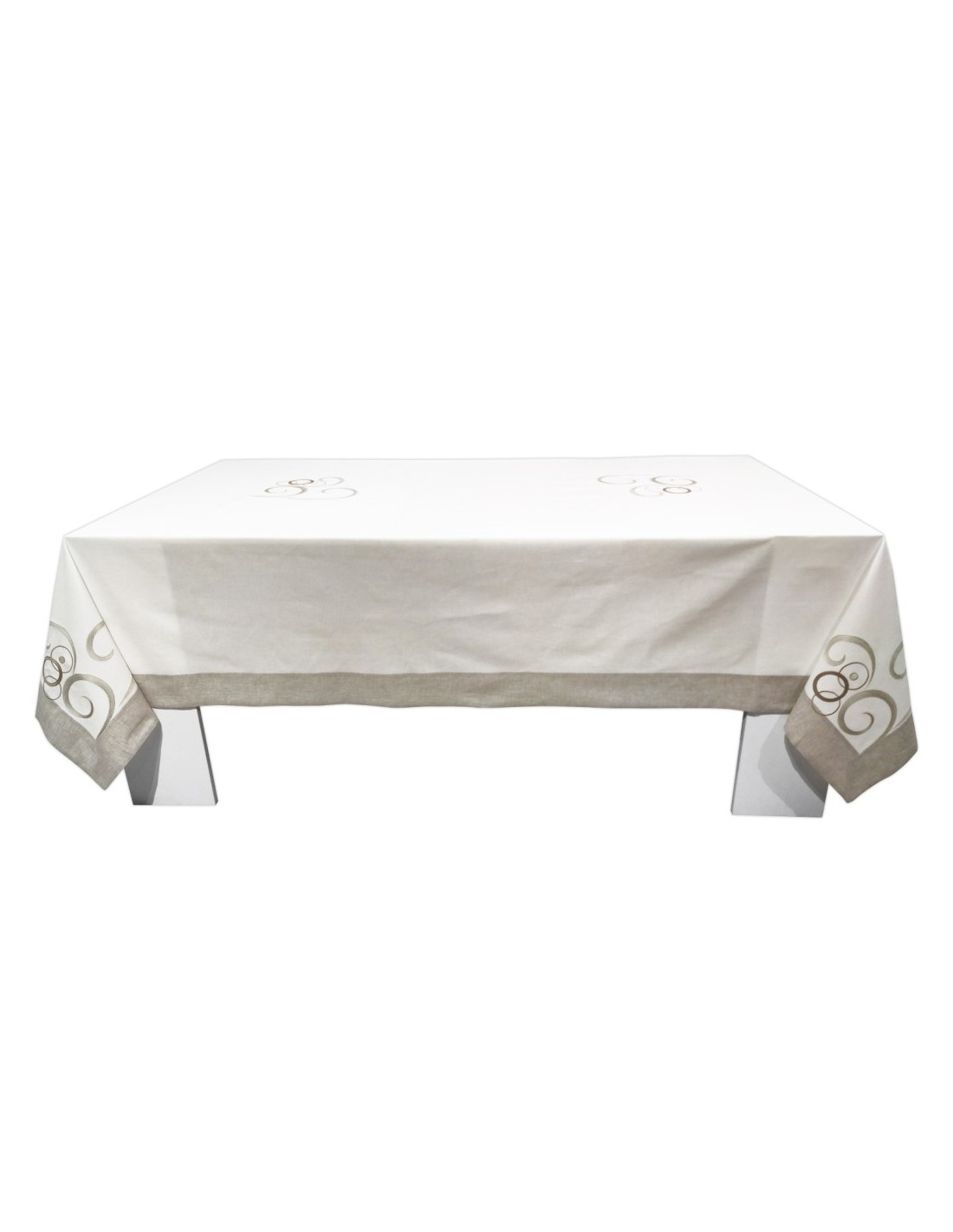 Tovaglia Dea da 12 posti in Panama di puro cotone rifinita con ricami