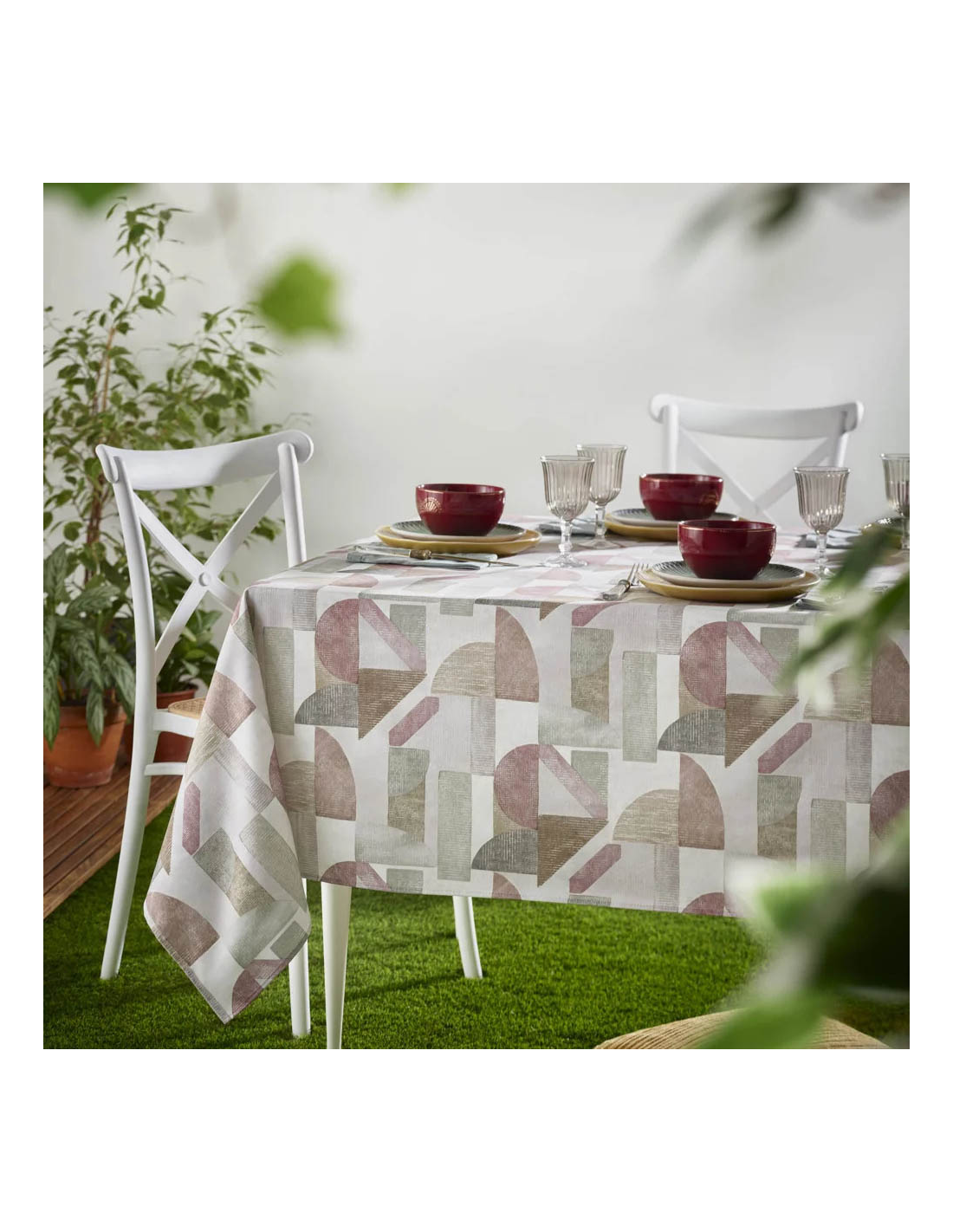 la nostra tovaglia "Óvalo". Caratterizzata da un delicato motivo nei toni