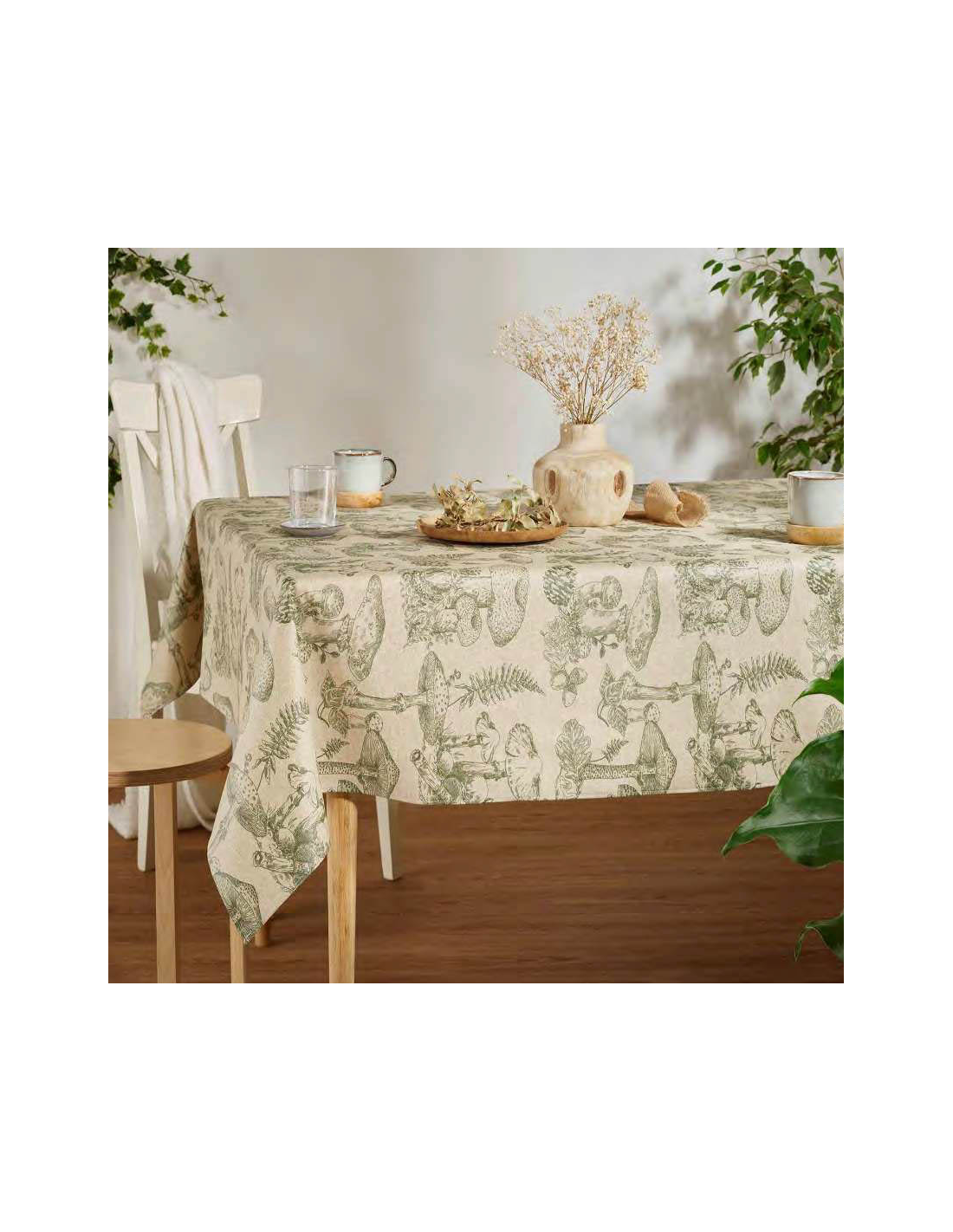 funghi e piante selvatiche, questa tovaglia evoca la bellezza della natura.