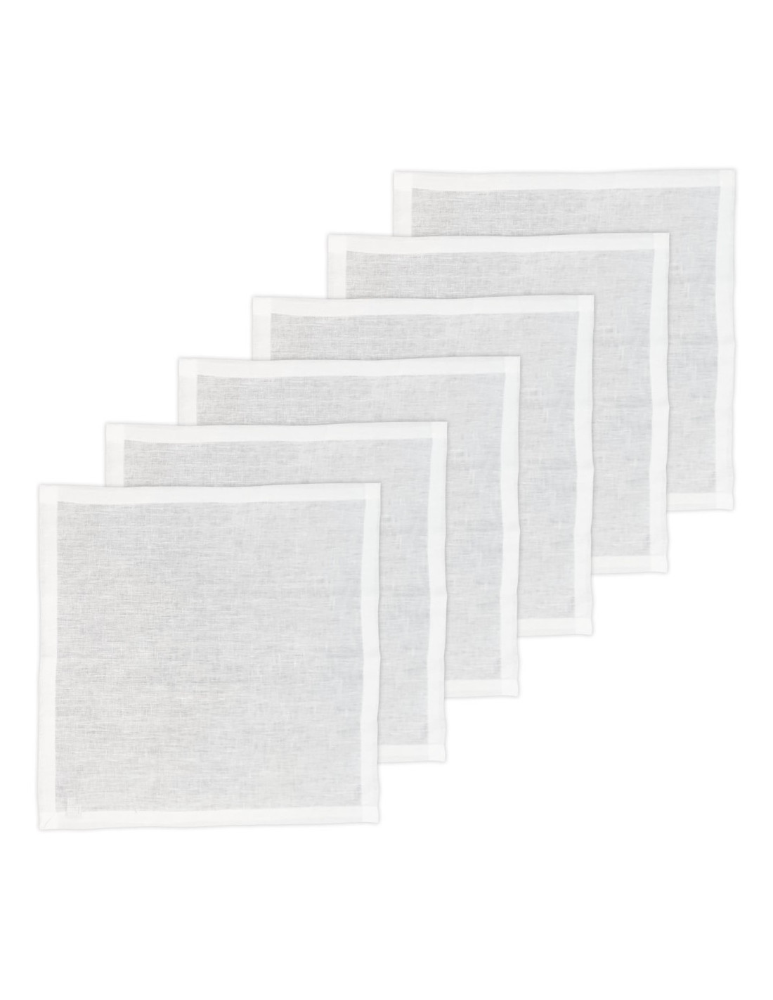 Set 6 tovaglioli in puro lino rifiniti con orlo lineare.