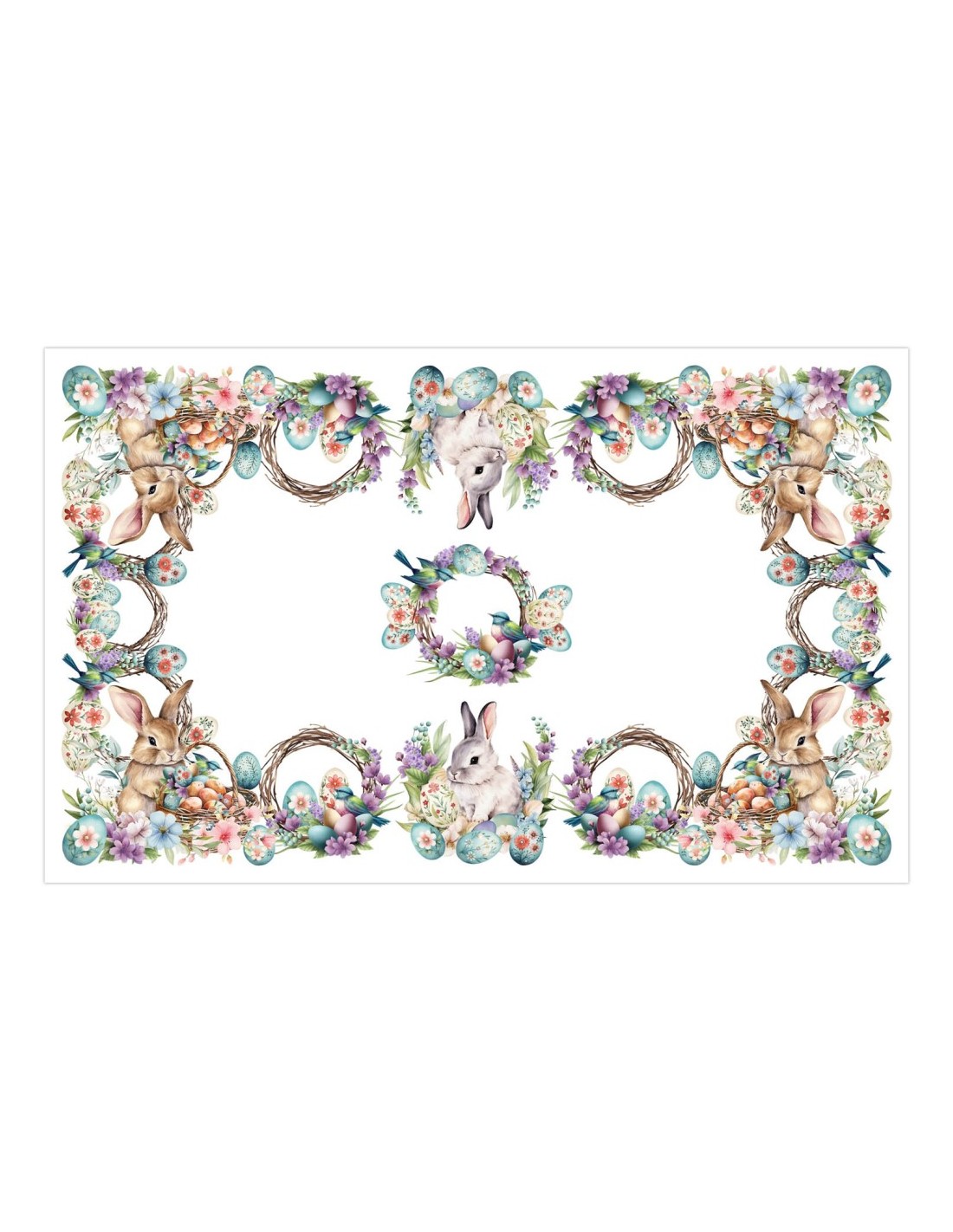 ricca di dettagli: uova dipinte con motivi floreali, nidi e una grande varietà