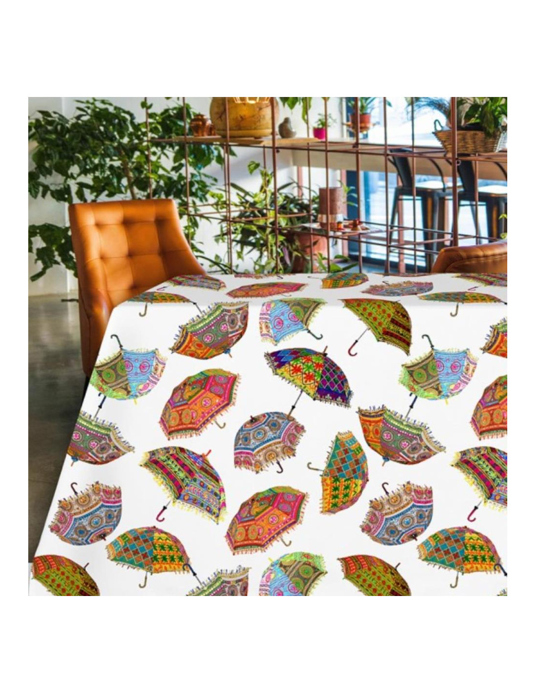 Tovaglia in Panama di cotone stampato fantasia Parasole con tovaglioli.