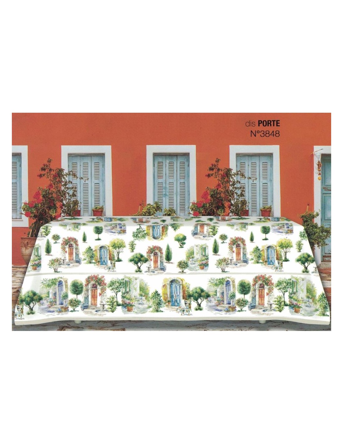Tovaglia in Panama di cotone stampato fantasia Porte senza