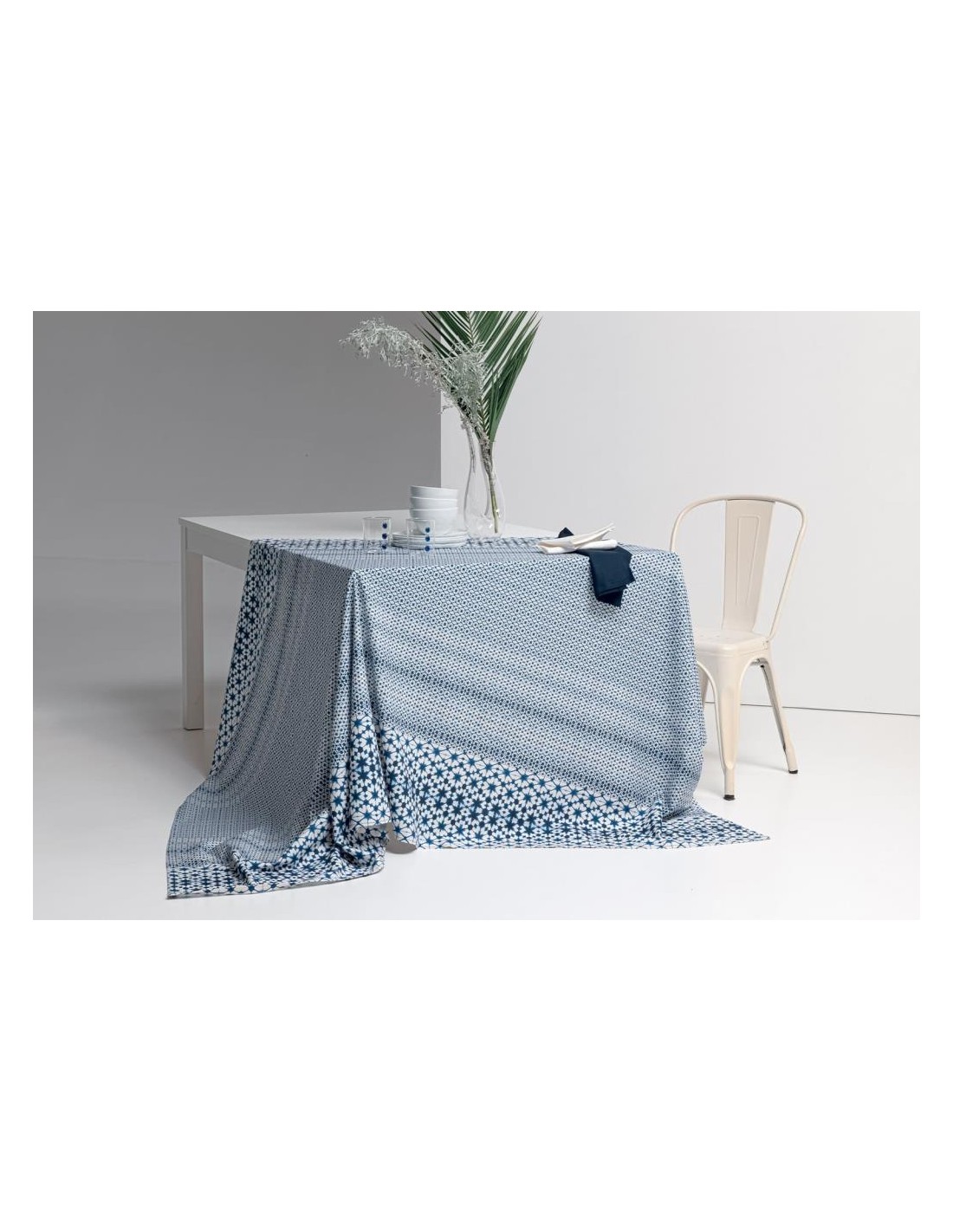 Tovaglia in Panama di cotone stampato fantasia Minimal Thai senza