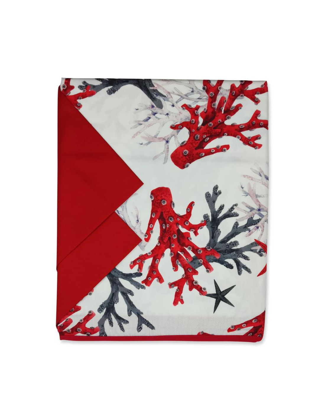 Tovaglia in Panama di cotone stampato fantasia Corallino con
