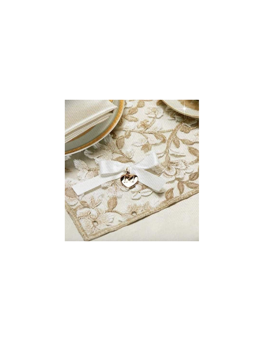 Tovaglia Liu Jo linea Gold con cornice in pizzo, logo in swarovski e