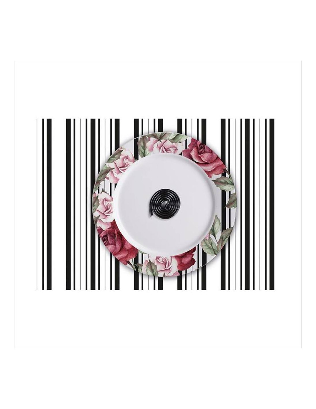 La tovaglietta americana della linea Roseline, è un omaggio alla femminilità, dai dettagli ricercati, la sinuosità delle linee e delle fantasie colorate incontra il bianco e nero.
