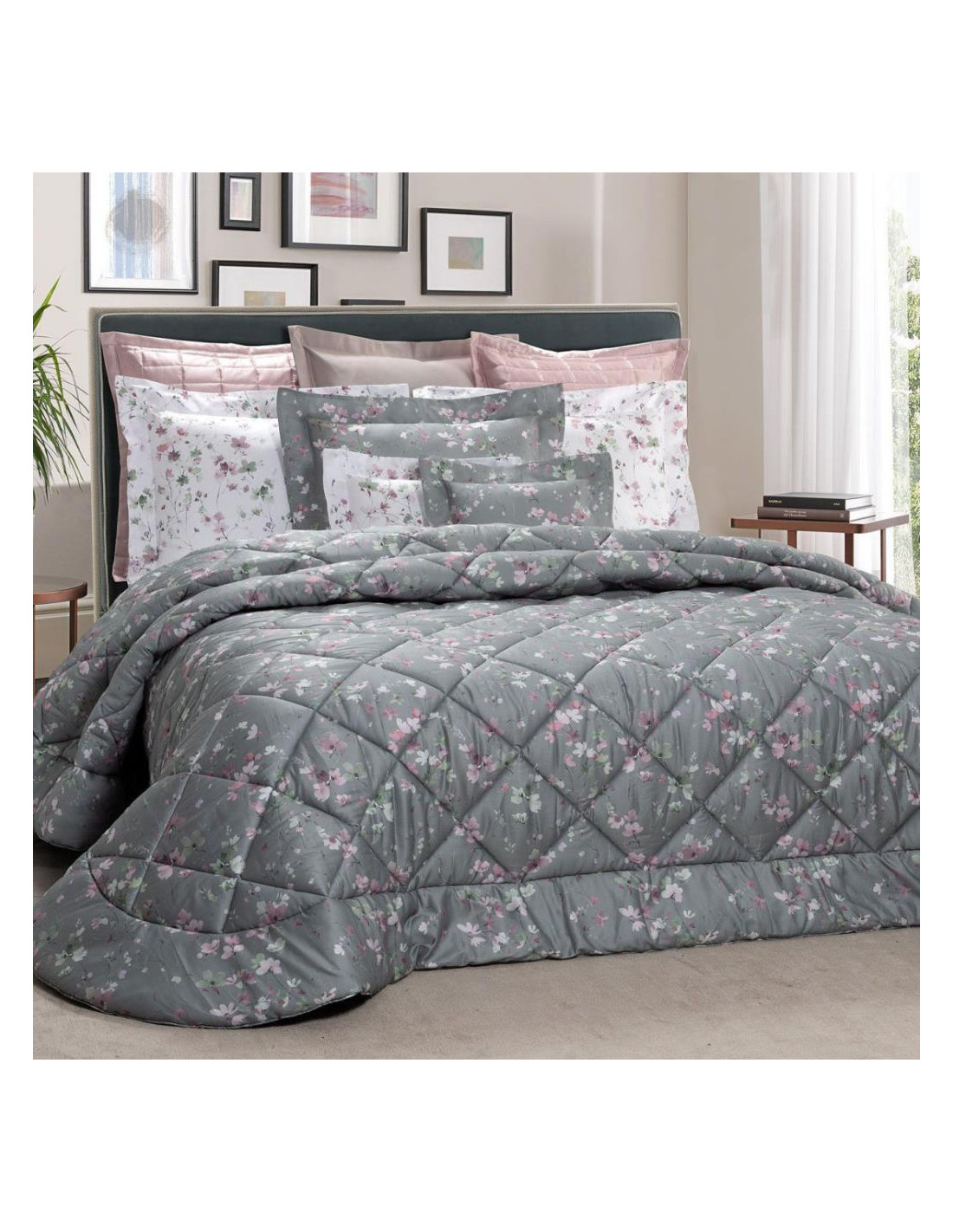 Romantica trapunta matrimoniale Dea dalla fantasia floreale con toni