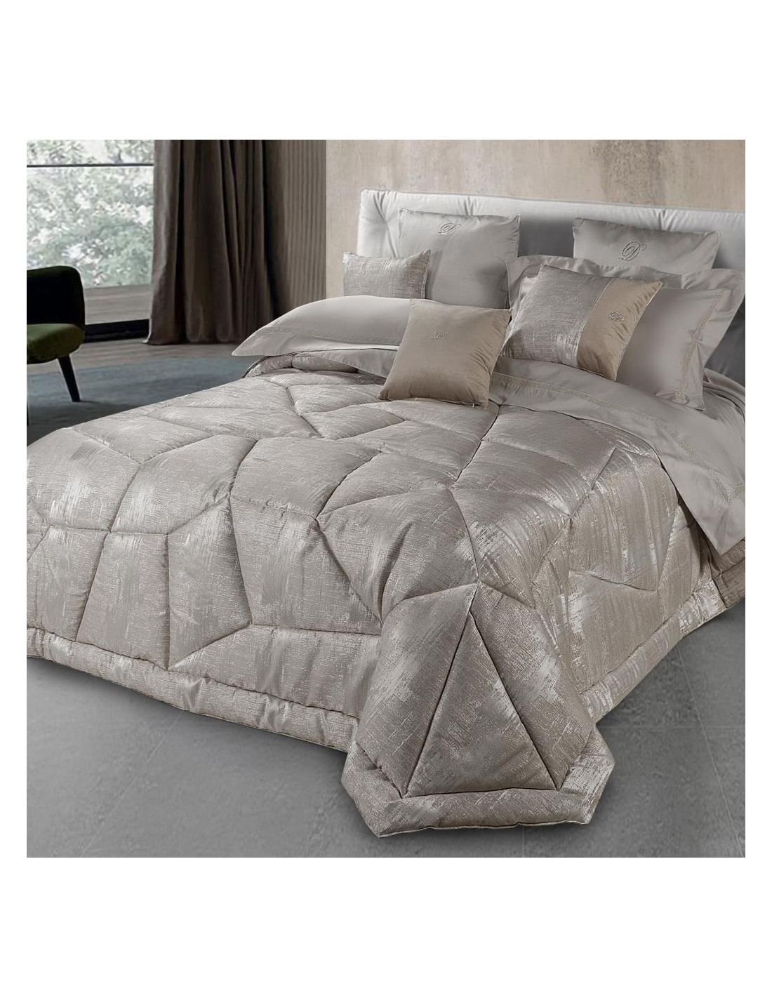 Trapunta matrimoniale David in tessuto jacquard e 2 cuscini