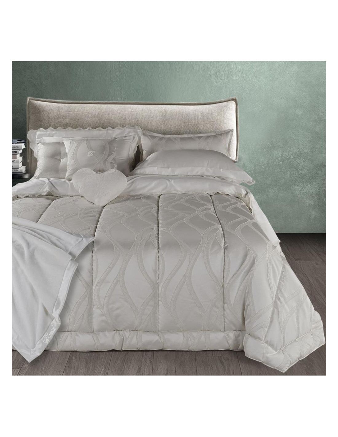 Trapunta matrimoniale David in tessuto jacquard e 2 cuscini arredo.