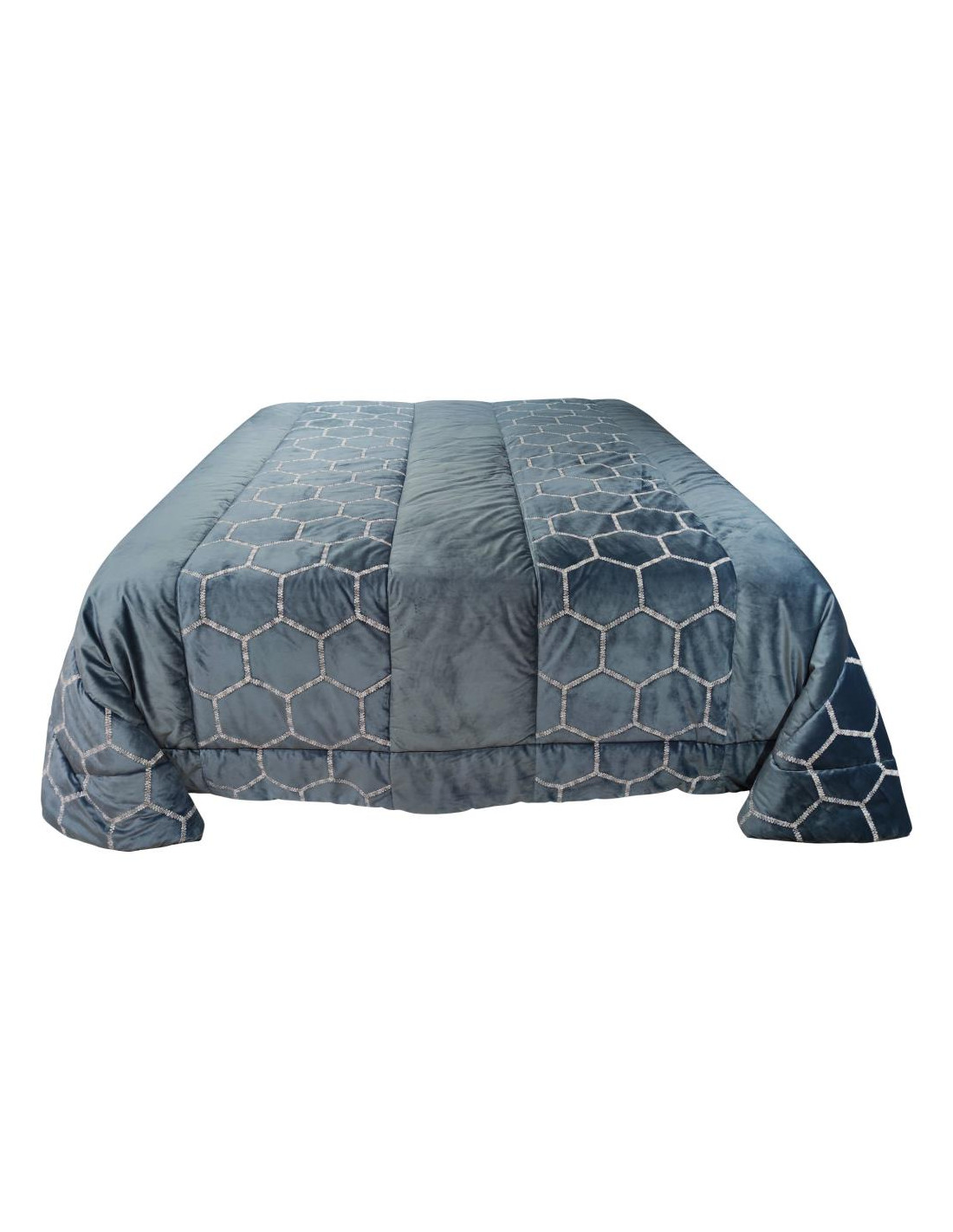 Trapunta matrimoniale ricamo esagoni con angoli stondati.