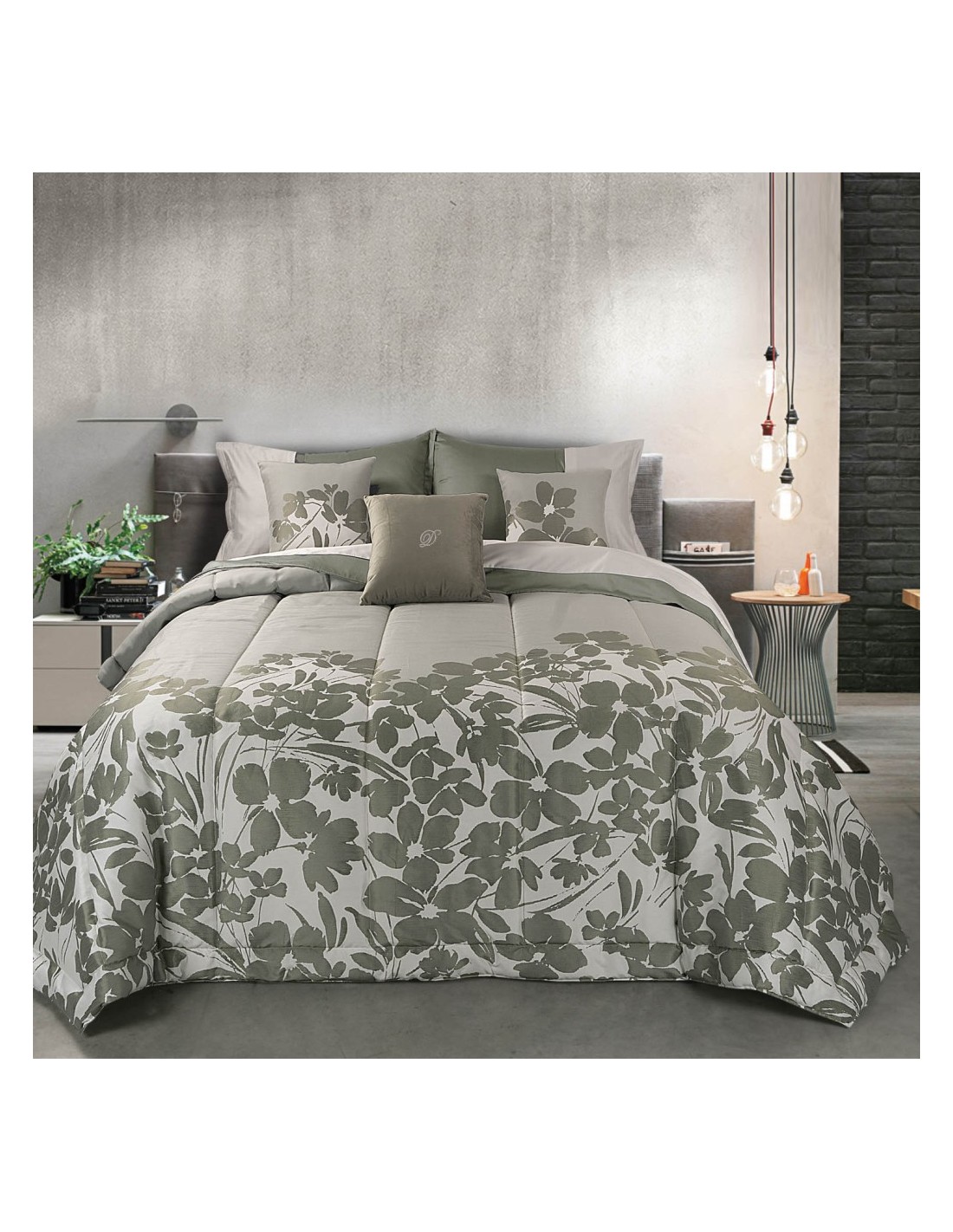 TRAPUNTA 2 PIAZZE IN TESSUTO JACQUARD E 2 CUSCINI ARREDO