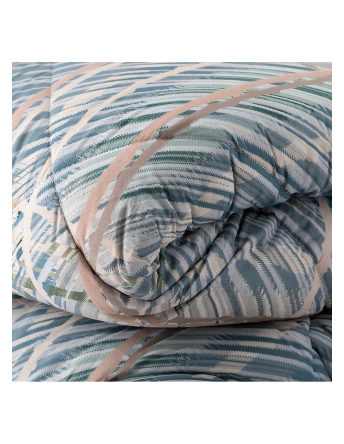 Con il suo disegno geometrico a rombi, la trapunta percalle Yuta si distingue per l’eleganza sottile di un tartan reinterpretato in chiave contemporanea. Le linee tratteggiate e i contrasti grafici donano al tessuto un dinamismo sofisticato, capace di trasformare ogni camera da letto in uno spazio accogliente e ricercato. La lavorazione con stampa digitale su percalle 100% cotone garantisce una resa cromatica nitida e durevole, mentre l’imbottitura da 350 GSM in poliestere assicura il giusto equilibrio tra calore e leggerezza.