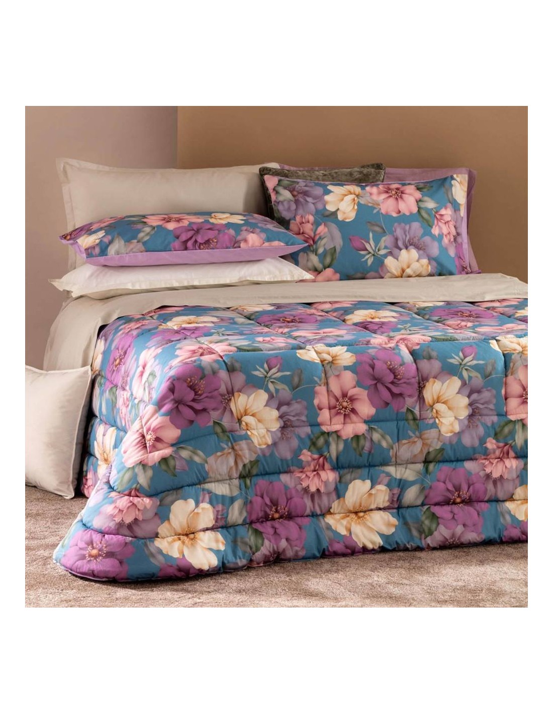 Trapunta Matrimoniale Riviera linea Hoara in puro cotone stampato.