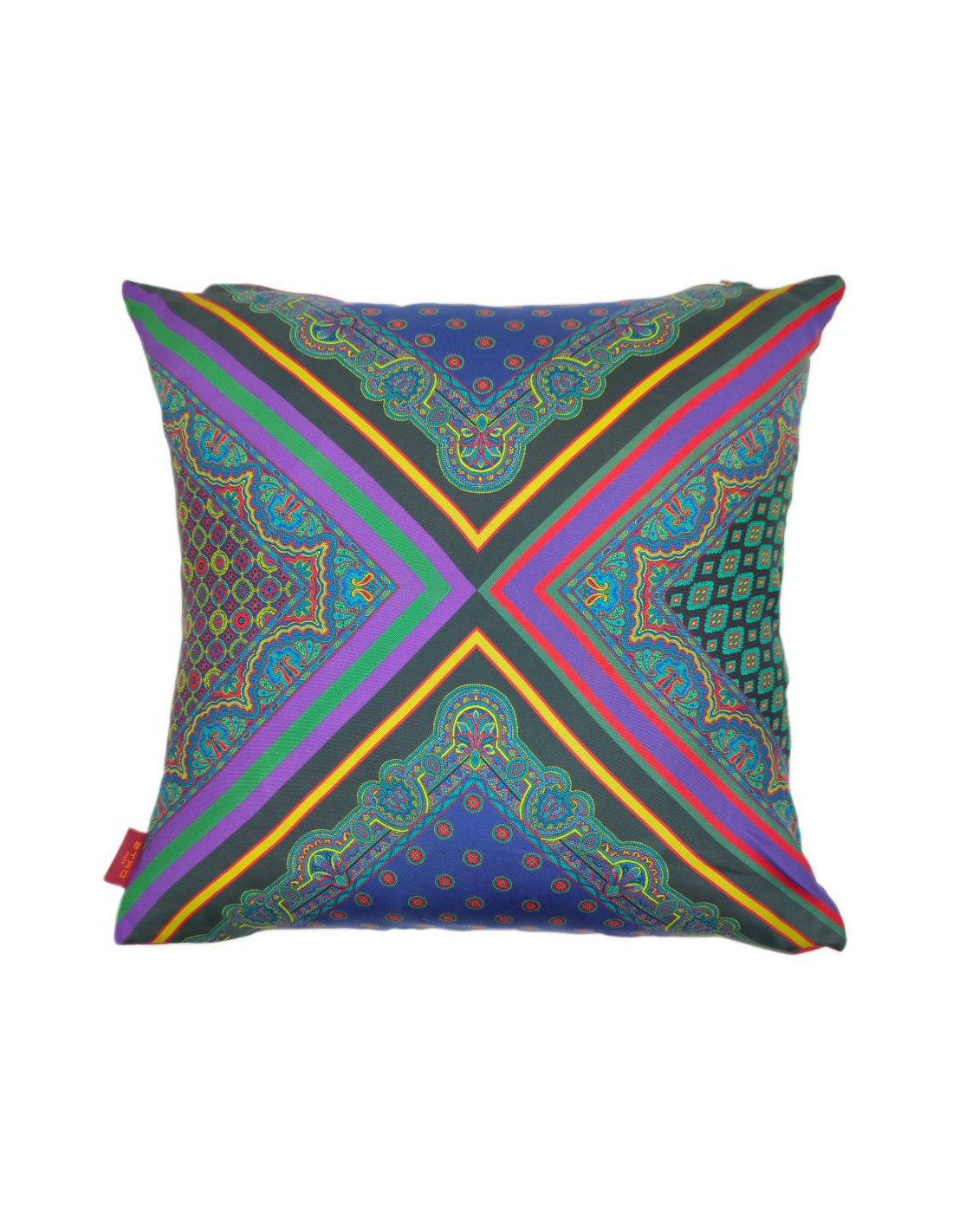 rifinita con bordo tinta unita bordeaux e 2 cuscini arredo.