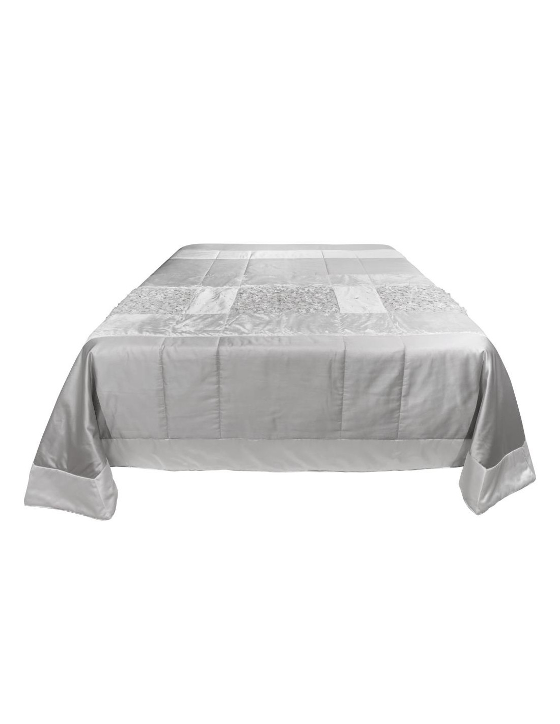Trapuntino matrimoniale in rasone con inserti di velluto, organza ricamata