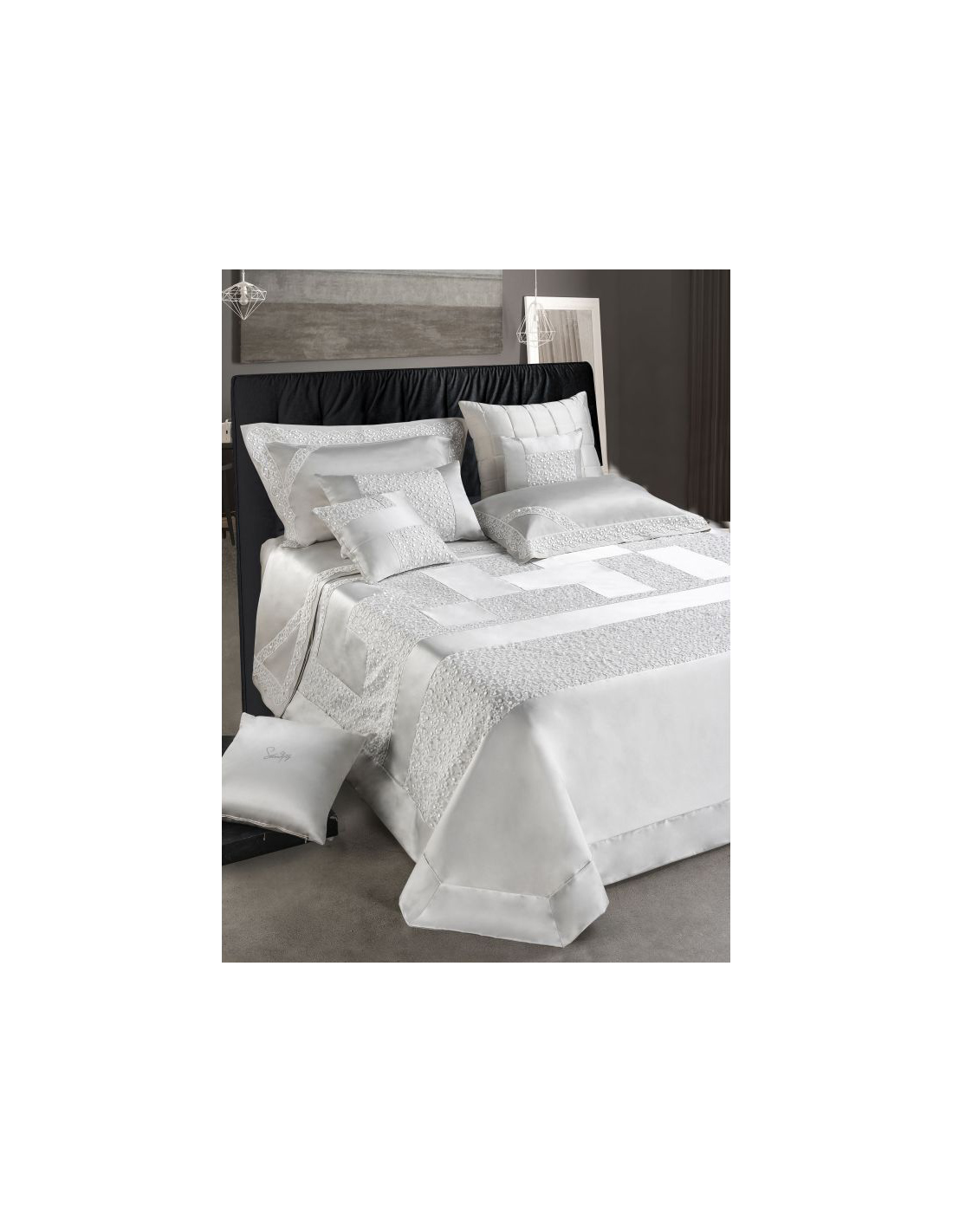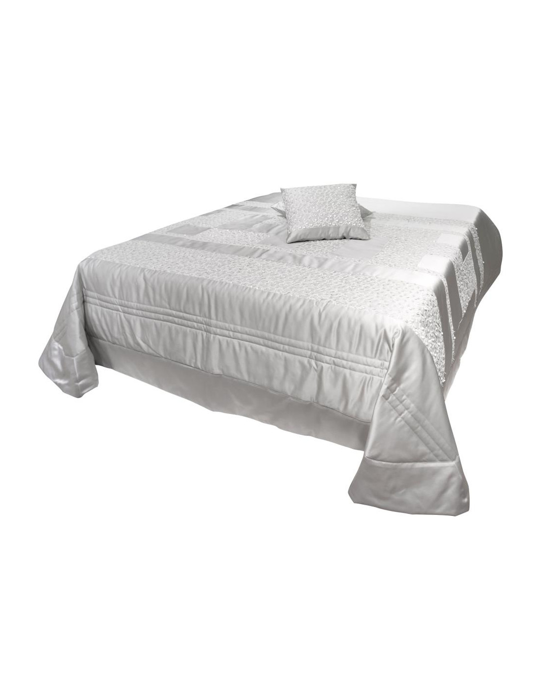 Trapuntina matrimoiale in raso rifinita con pizzo in tulle ricamato e 2