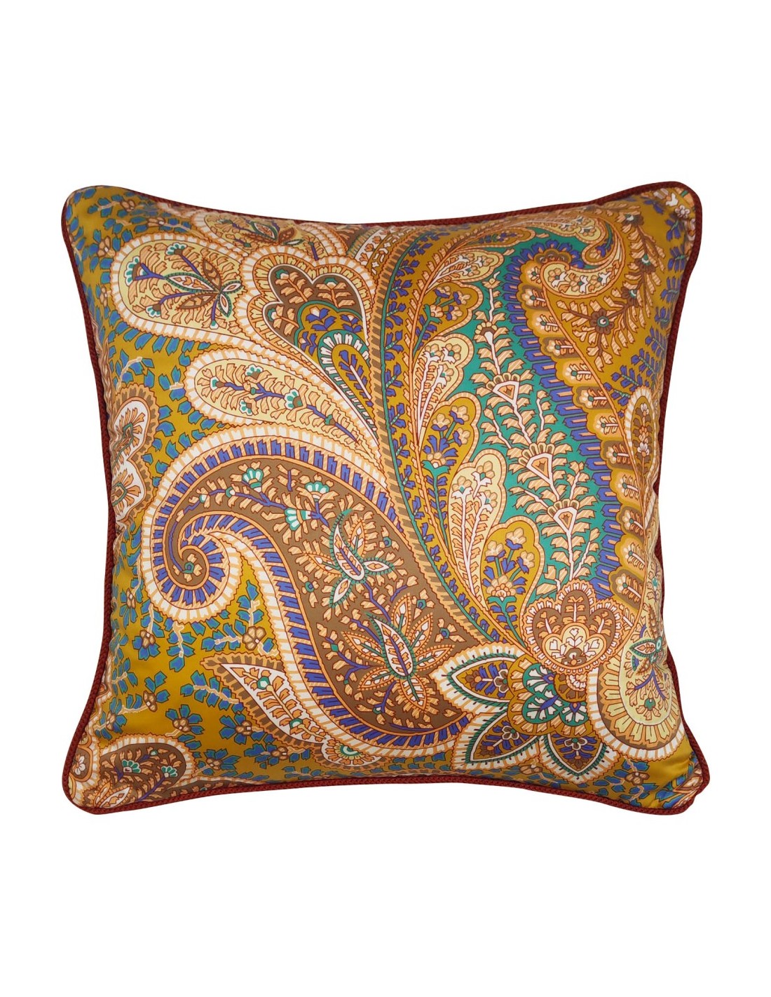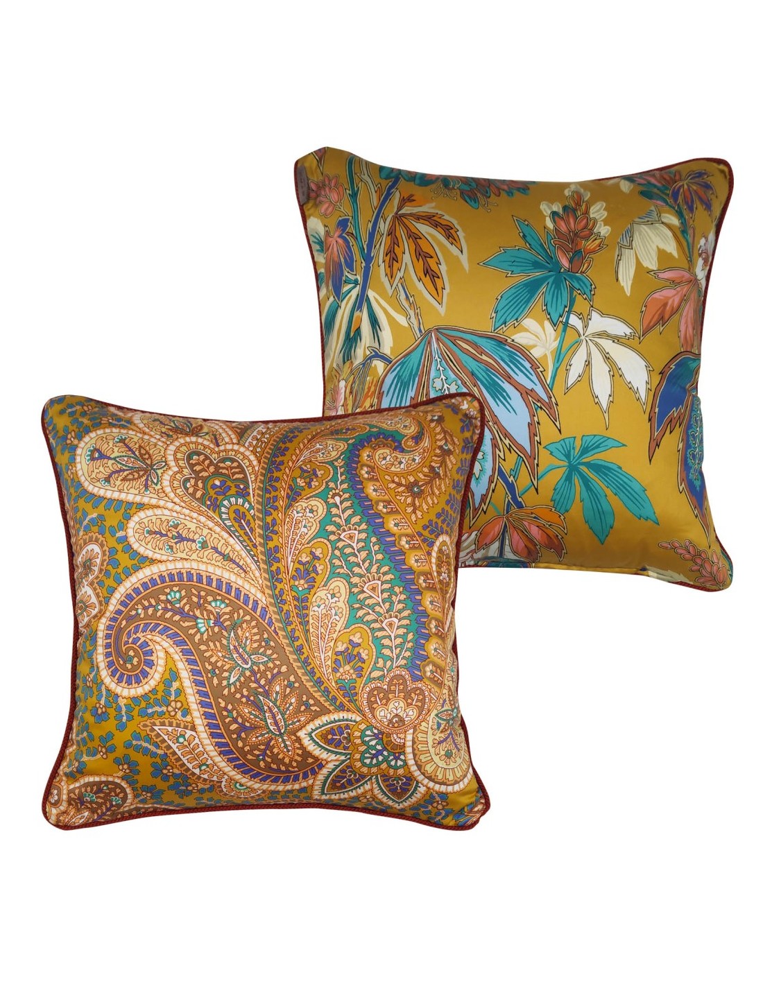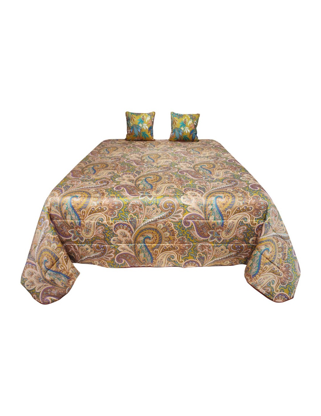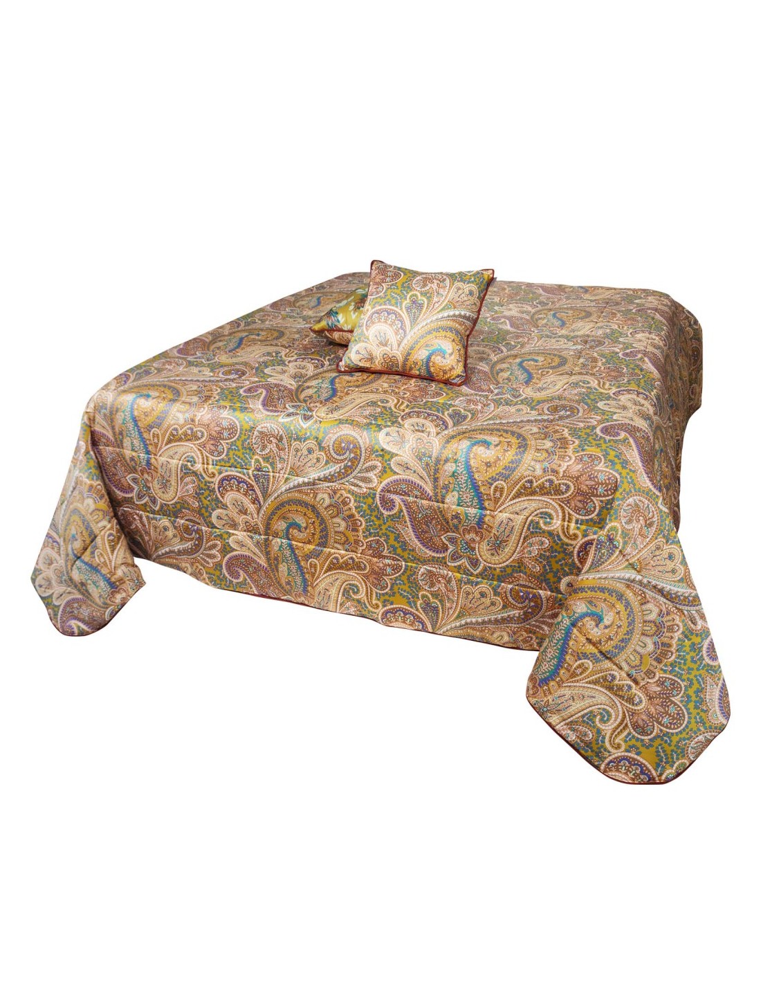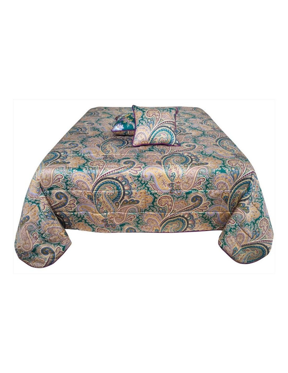 Trapuntino Etro matrimoniale reversibile in raso di puro cotone fantasia paysley, rifinita con cordone lungo il perimetro e 2 cuscini arredo double face.