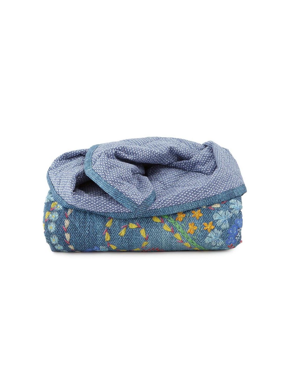 Una fantasia orientale si estende su tutta la superficie del capo lasciando un effetto jeans particolare e caratteristico.