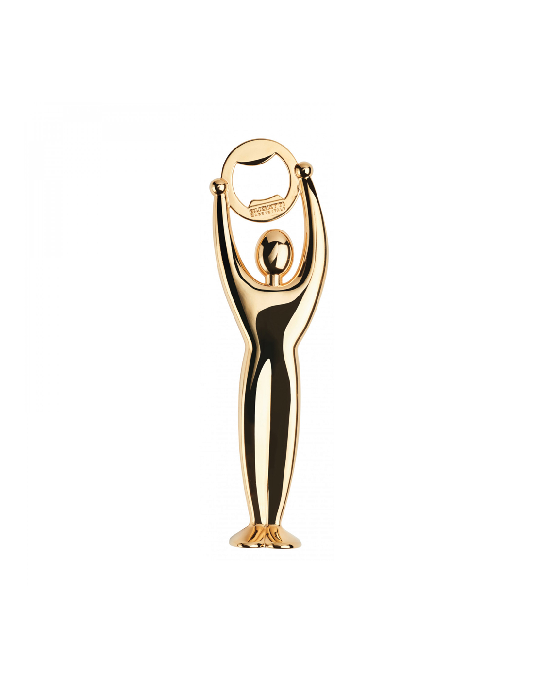 Gym, l'apribottiglia, si veste di un'elegante finitura gold 24 kt per soddisfare i gusti più esigenti. Realizzato in zama placcata oro 24 kt.