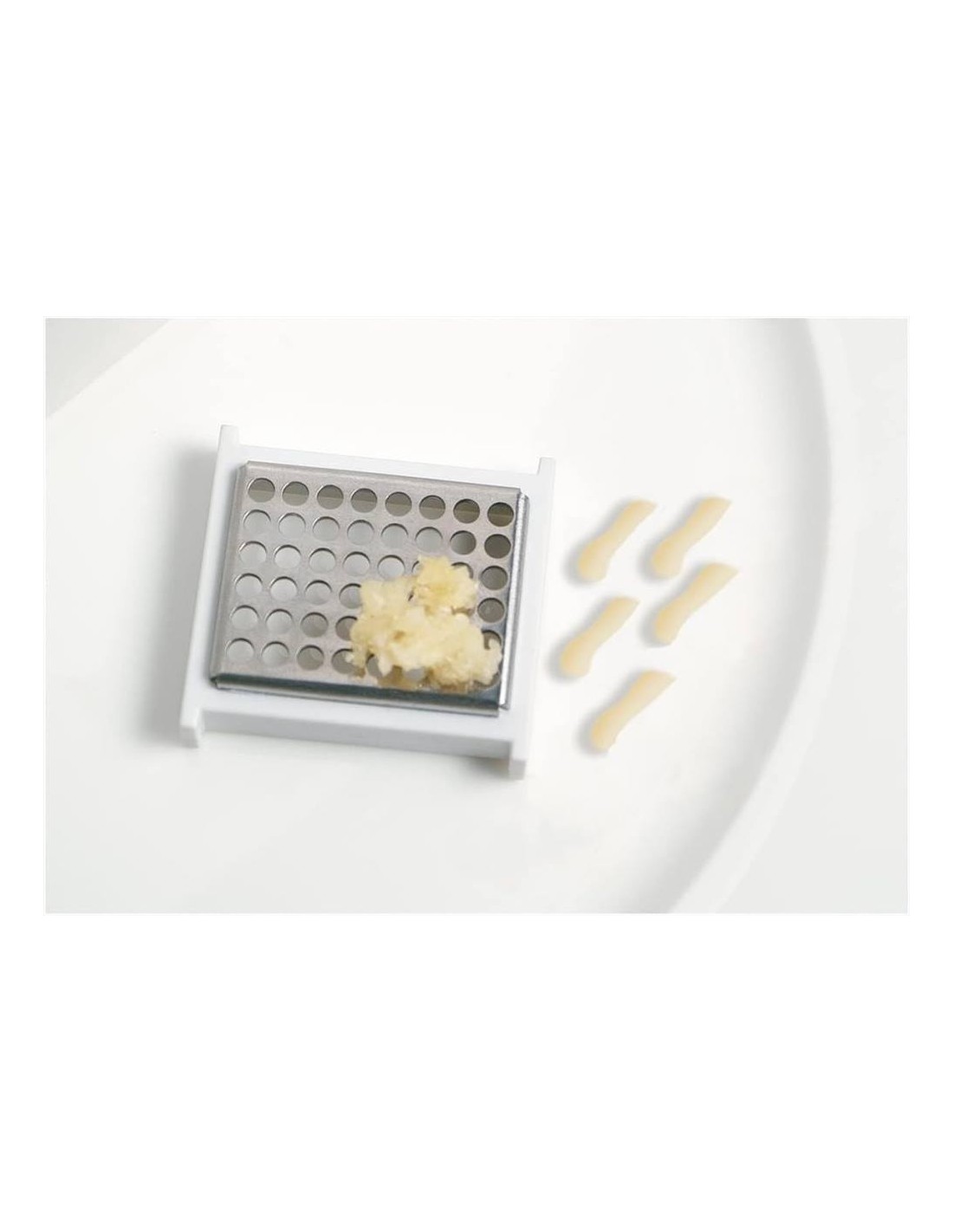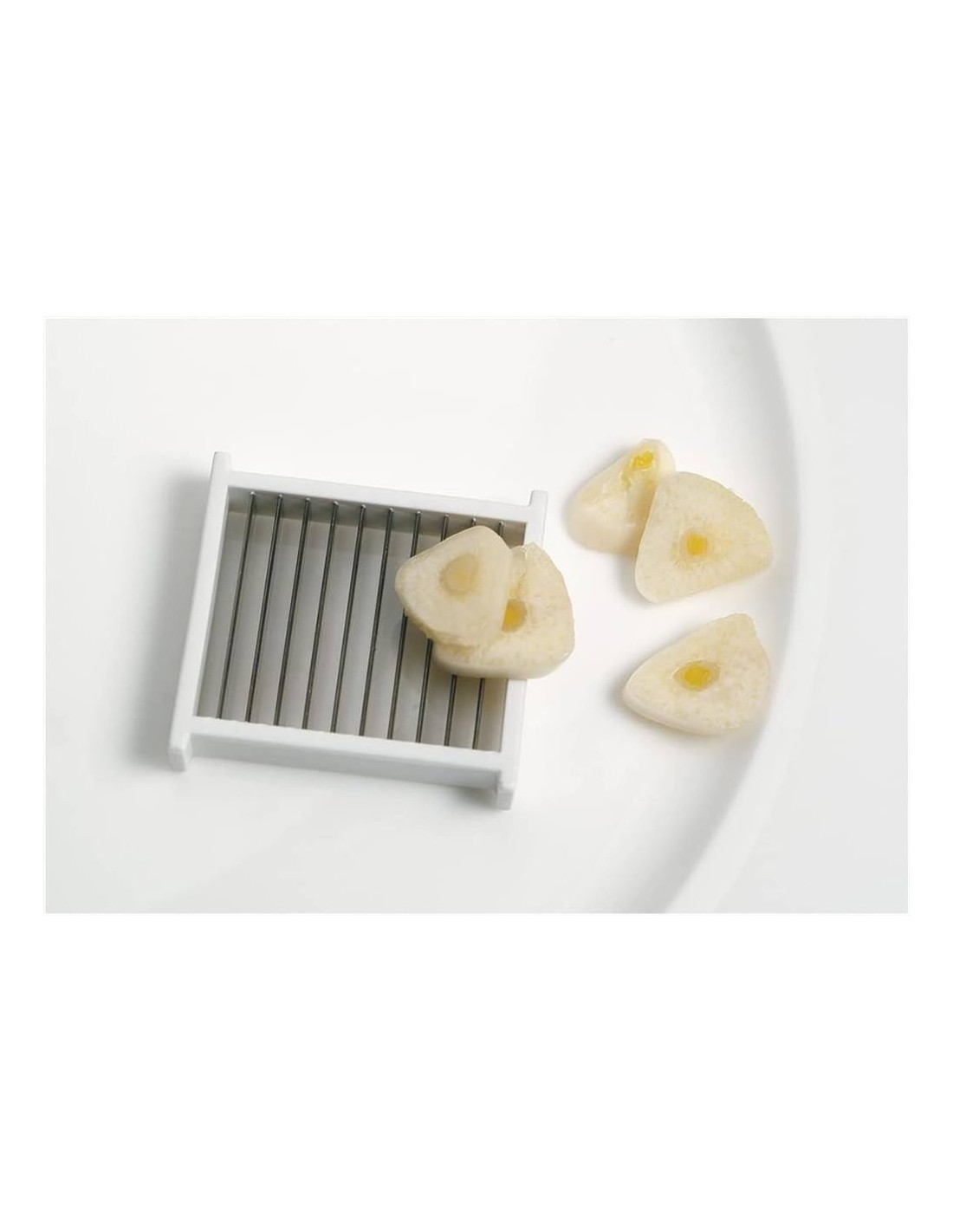 Spremi e affetta aglio realizzato in plastica e lame in acciaio inox