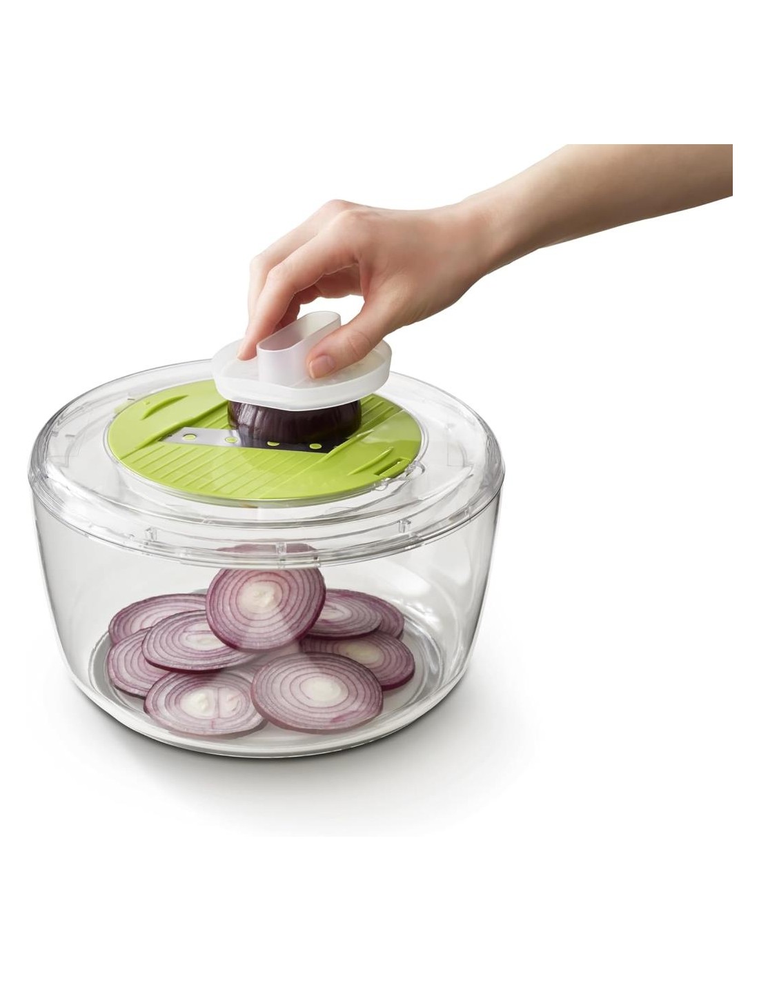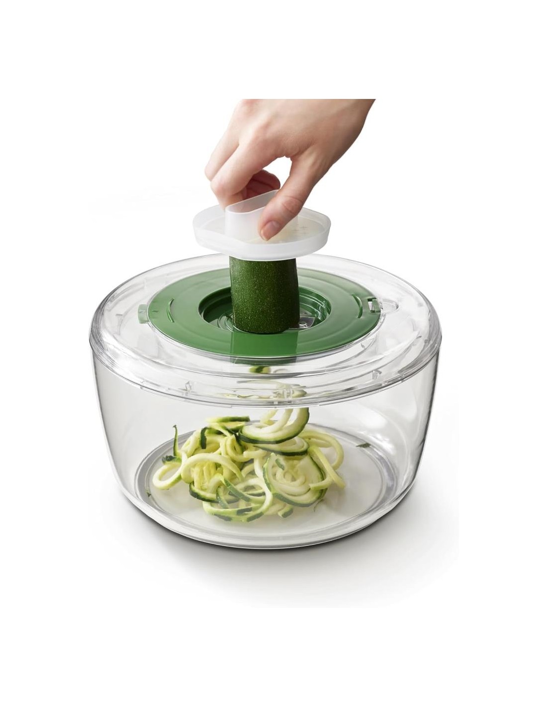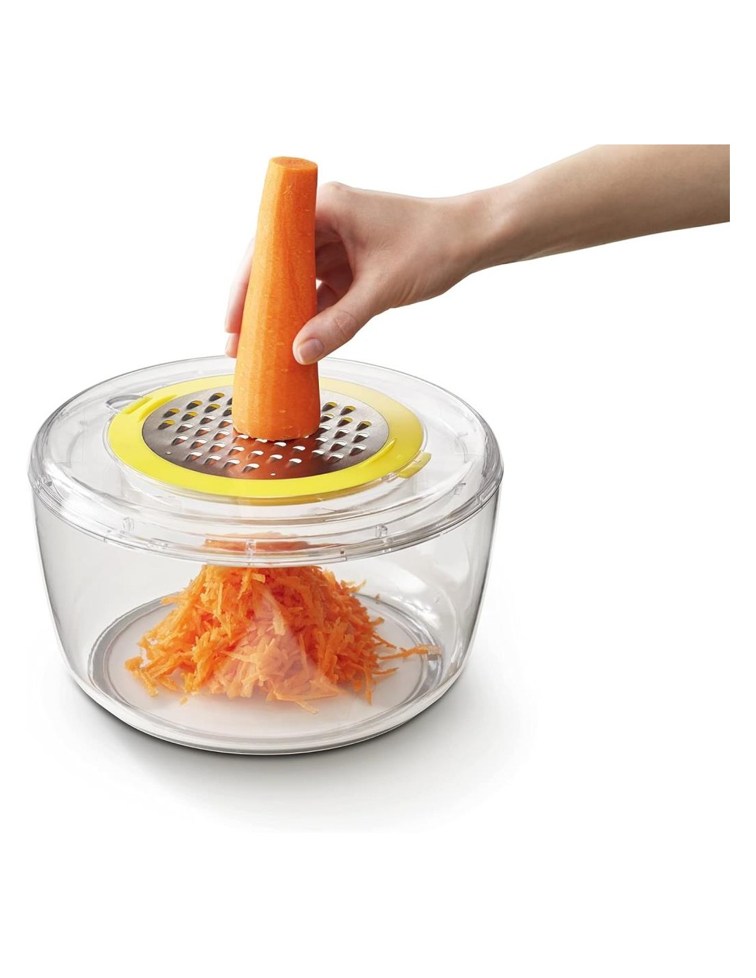 CONTENITORE MULTIUSO CON CENTRIFUGA ,TAGLIERINA A SPIRALE, AFFETTATRICE E GRATTUGGIA COMPATTO BPA FREE SALVASPAZIO