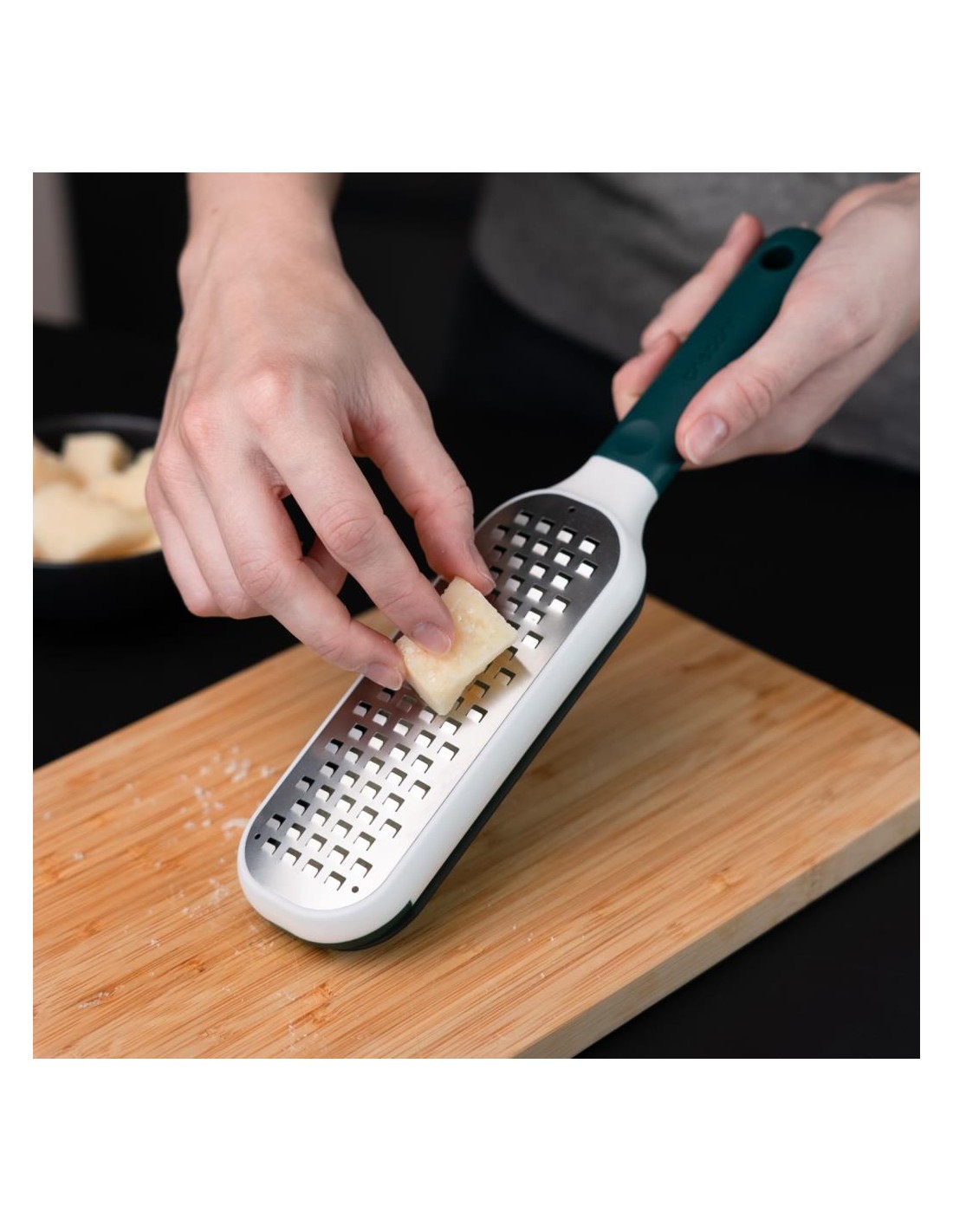 Grattugia con contenitore di raccolta, perfetta per grattugiare formaggi a pasta dura o morbida o da utilizzare per ridurre in piccole scaglie cioccolato, verdure e altri ingredienti.