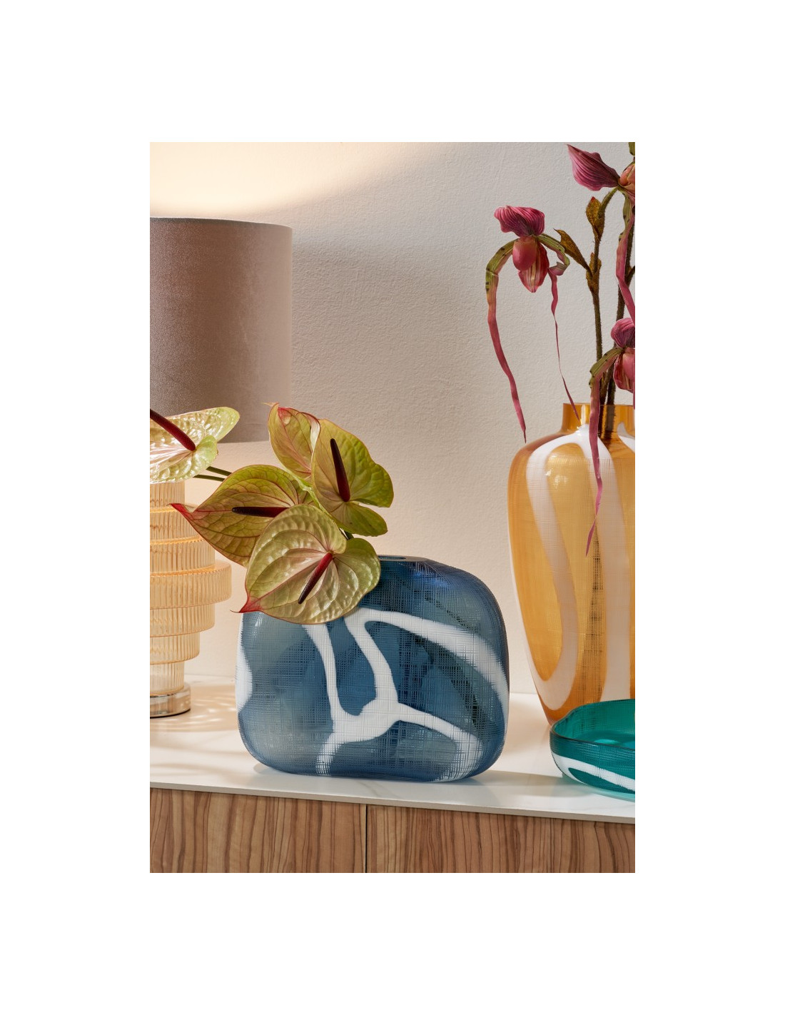 Vaso d'arredo in pasta di vetro colorato con effetto retinato.