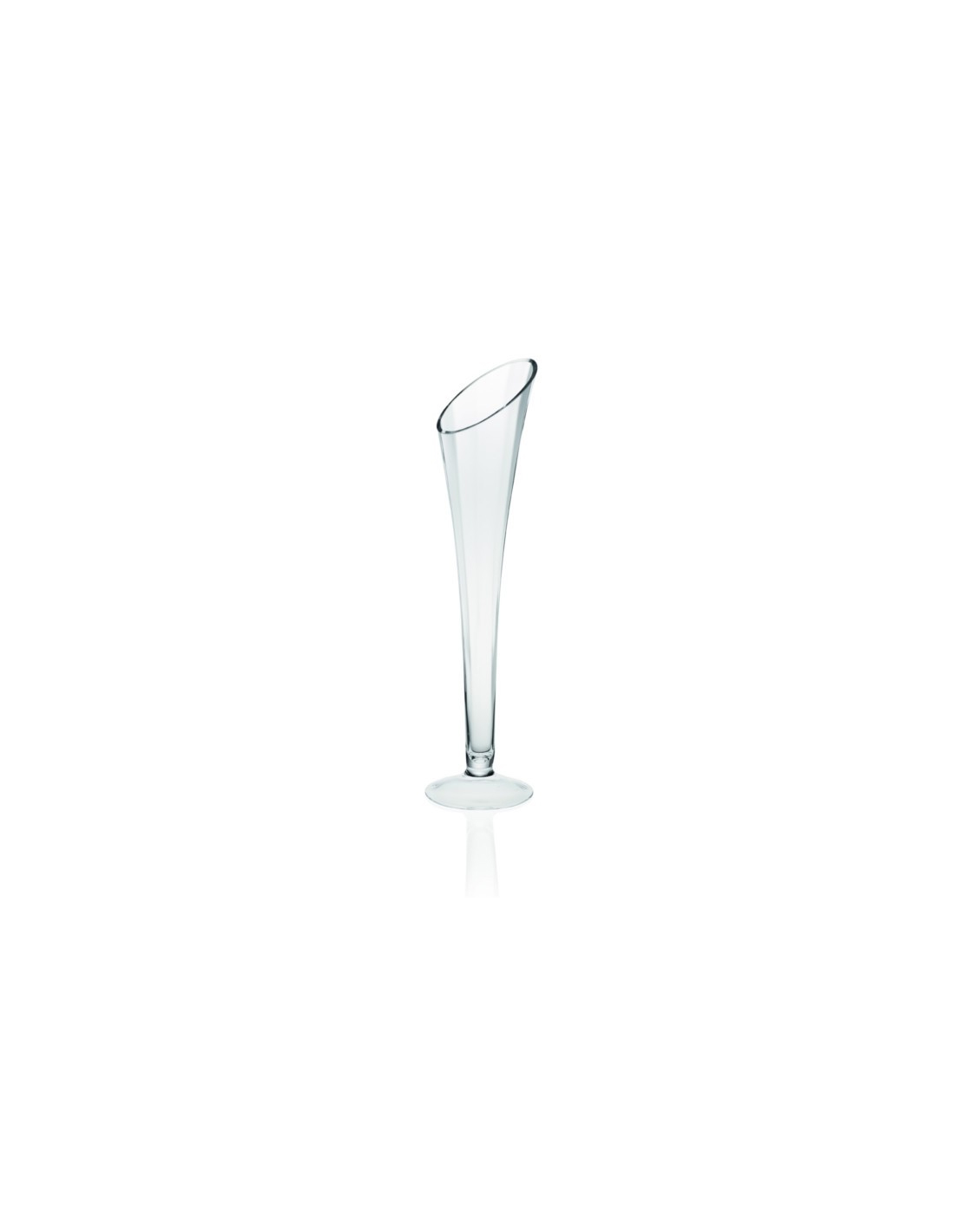 Vaso in vetro ottico trasparente, con taglio obliquo dalla forma originale e