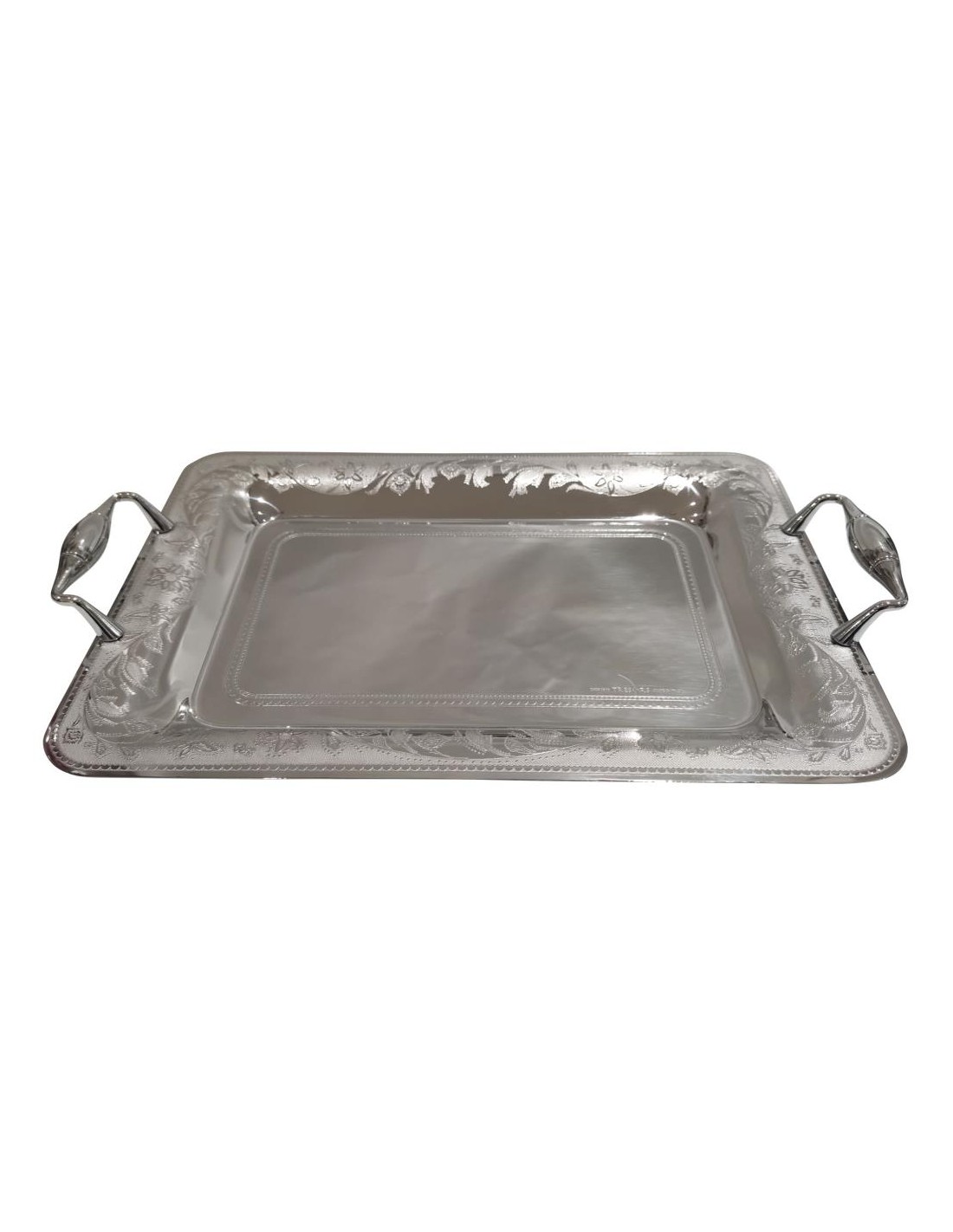 Vassoio rettangolare con manici in acciaio inox con rifiniture a rilievo.