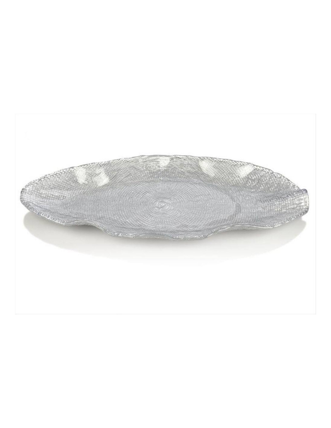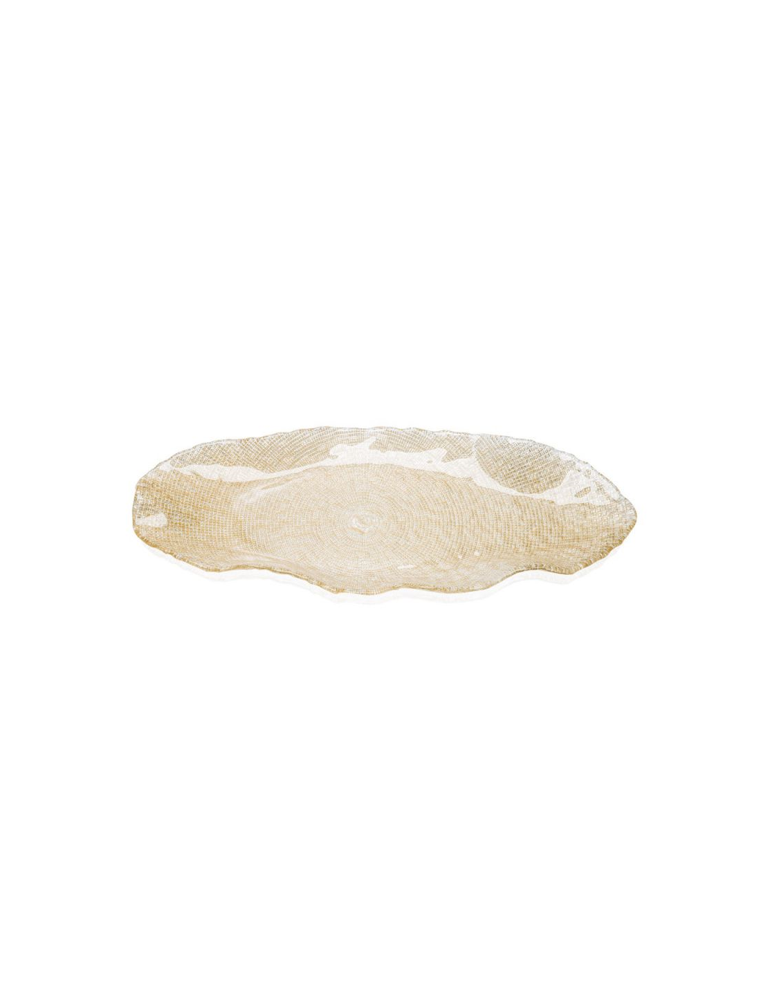 Vassoio ovale in vetro pressato e decoro glitterato.