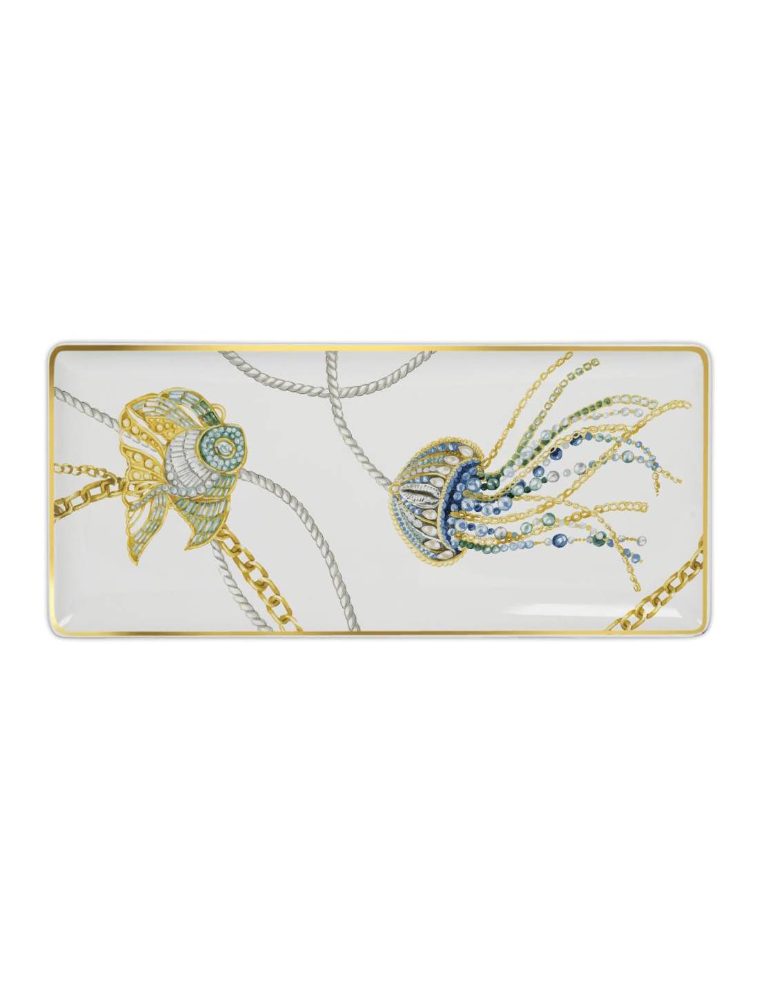 Vassoio gourmet rettangolare in porcellana decorata e rifiniture in
