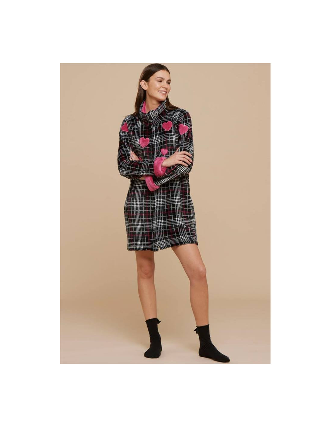 Vestaglia Donna invernale chiusura a zip in Coral Fleece e applicazioni