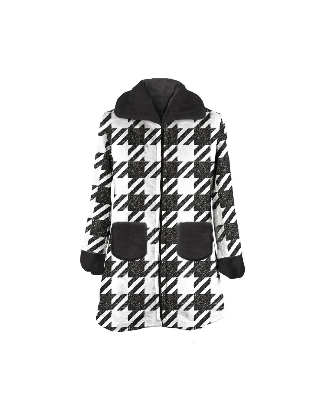 DAUNEX VESTAGLIA DONNA DA CAMERA IN PILE A ZIP - PIED DE POULE