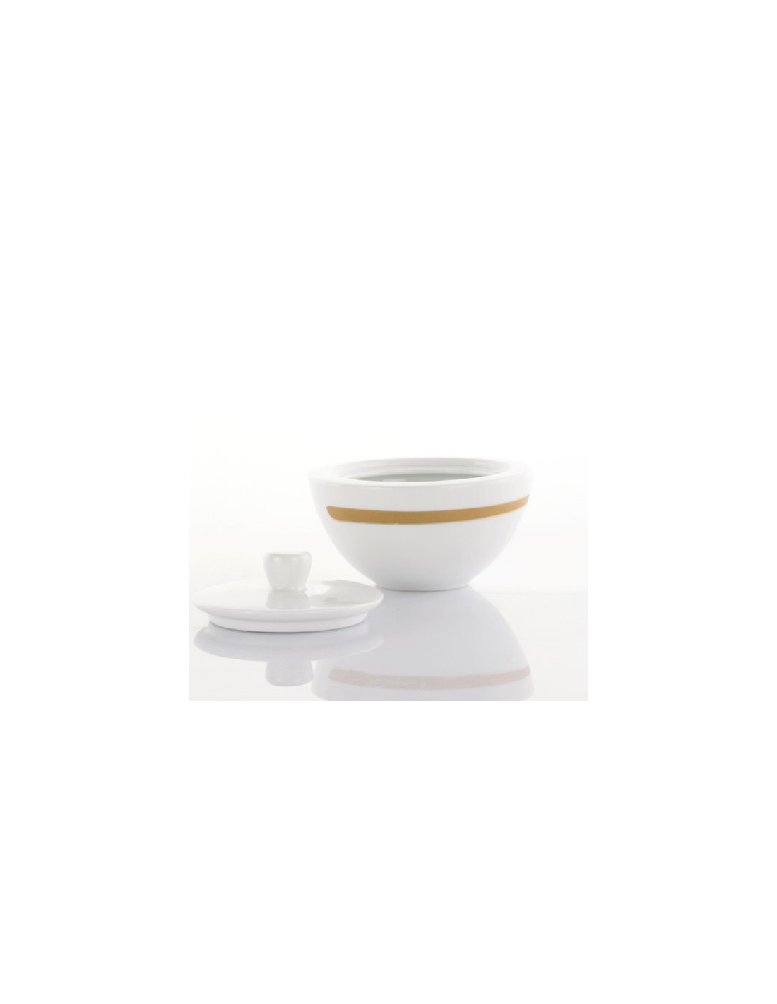 Zuccheriera elegante in porcellana bianca decoro oro.